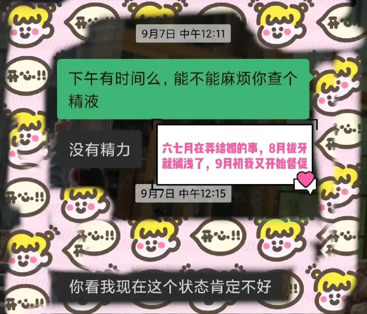 后来就是快领证了,我姐说最好去查下精液,质量好的话对孩子也好,反正怎么劝说都是不了了之……