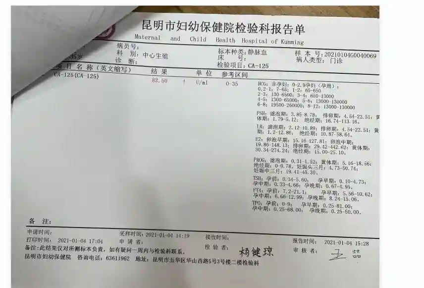 2022年3月,我在昆华做了宫腹腔镜,因为病情复杂,一个微创手术做了5个小时。术后医生告知我输卵管好的,只是我有内异症,还比较严重,这个才是影响我怀孕的主要原因。第一次听到内异症,我躺病床上看着小红书,看到说CA125高,就是内异症。我突然想到,我在市妇幼好像做过这个检查(因为我会研究自己的检查结果数值,当时不懂这个代表什么,问了医生,医生明确告诉我没事),回头一看,自己的CA125数值80多(图二),竟然告诉我没事。作为医生,就算不会治疗内异症,你好歹给我考虑下降调移植吧,两次都没有降调。第一次自然周期,第二次移植鲜胚(前提是取卵的前一天B超内膜强回声。另外,我第二次移植图4的尿酸和血值都不好。后来知道这个是代表身体代谢不好,还移植鲜胚)。总体感受:1市妇幼试管之路,医护态度好,但是技术太低,不会查免疫和代谢问题,价格相对实惠吧。因为在市妇幼群里,我感觉成功的姐妹以年轻的居多。所以,年纪小的,没有太多问题的,可以尝试。要是年纪大的姐妹,请绕道