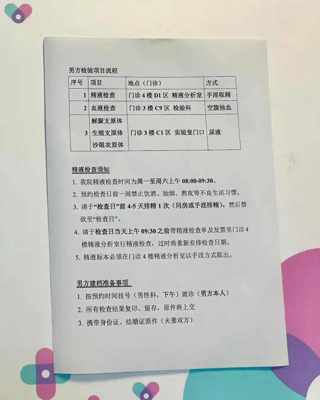 TIPS3:女方要做的第一轮检查参考图1,女方的检查注意事项参考图2,男方参考图3。