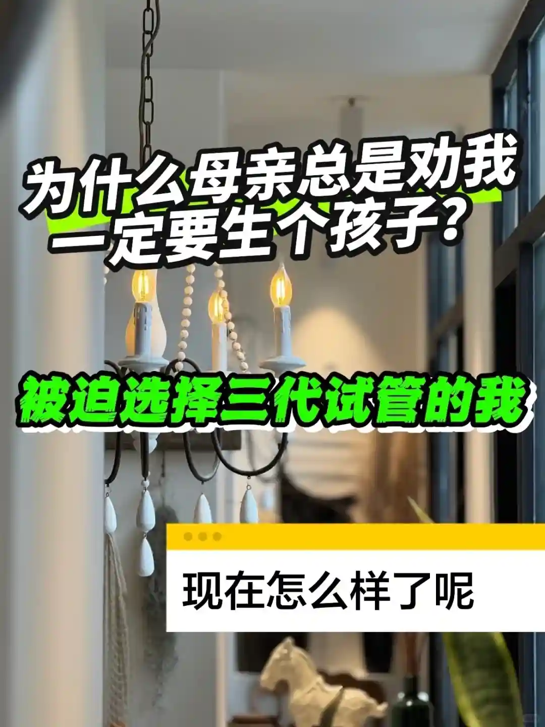 在我婚后漫长的日子里,一天夜晚醒来,我意识到母亲真的老了,身体也不再如从前。所以我决定不再等待,因为我明白时间不等人。在一次与母亲的交谈中,她提到希望我能早日结婚生子,好趁着她还能行动自如的时候帮忙带孩子。向我展示如何榨干她的剩余价值。我考虑到自己的身体,也改变不了婆婆的深刻观念,我和老公选择了三代试管,在这里真的很感谢这家三代机构,打破我对私立的刻板印象,服务很贴心,很戳中我的小情绪,心态好所以整个过程很顺利,一次就下车了,现在我的小宝也到来了。看着我妈忙前忙后,心里很感激。她用自己的方式在对我表达爱意,就像我对小宝一样,即便到了暮年,我也愿意奉献出力量来支持我的孩子。