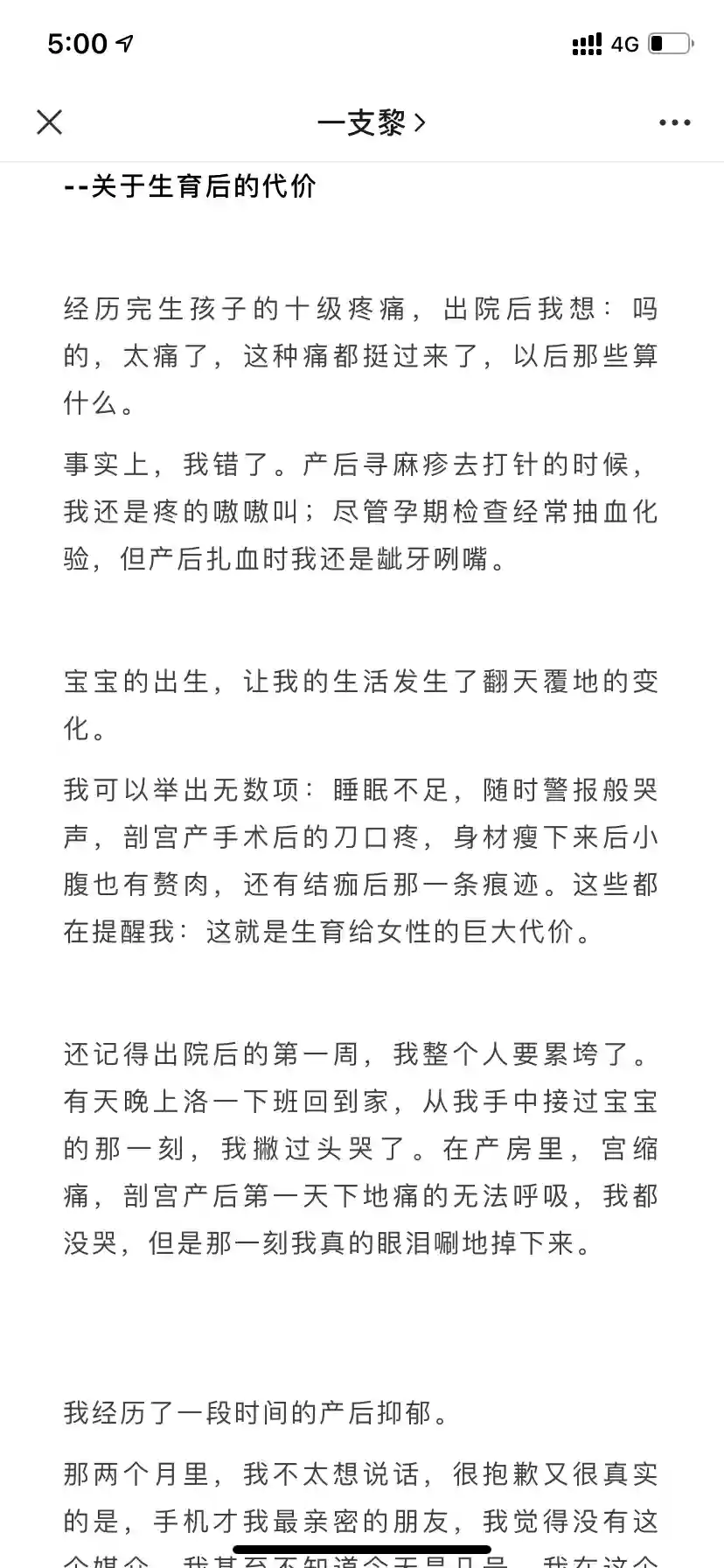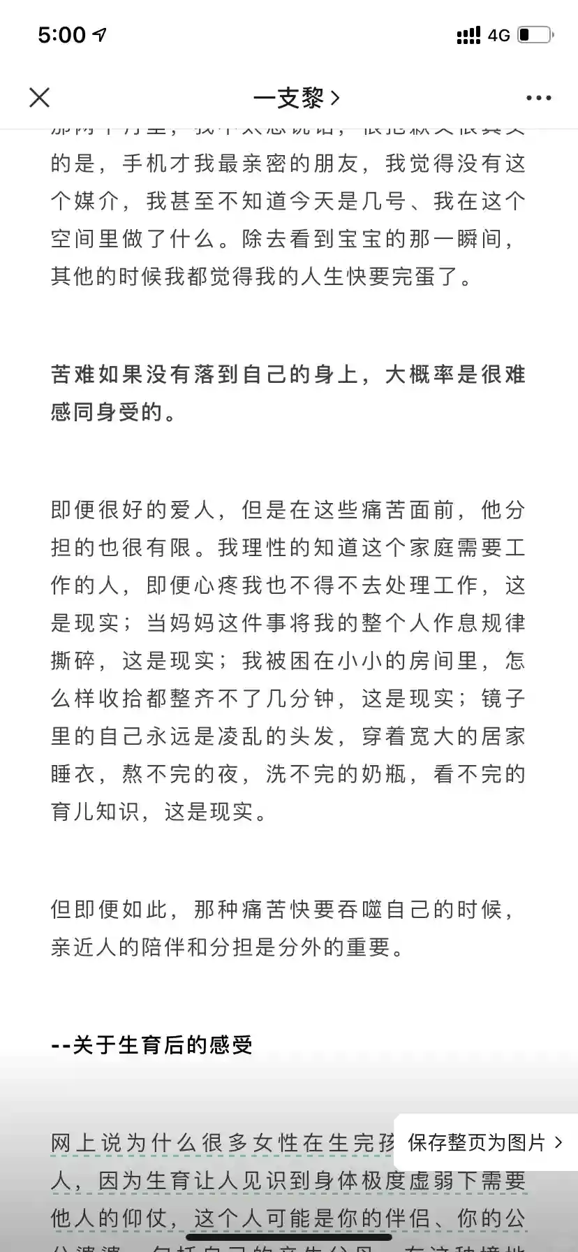 -网上说为什么很多女性在生完孩子后判若两人,因为生育让人见识到身体极度虚弱下需要他人的仰仗,这个人可能是你的伴侣、你的公公婆婆、包括自己的亲生父母。在这种境地里,会真正地考验你所在的家庭关系里是否能得到足够的尊重关心。