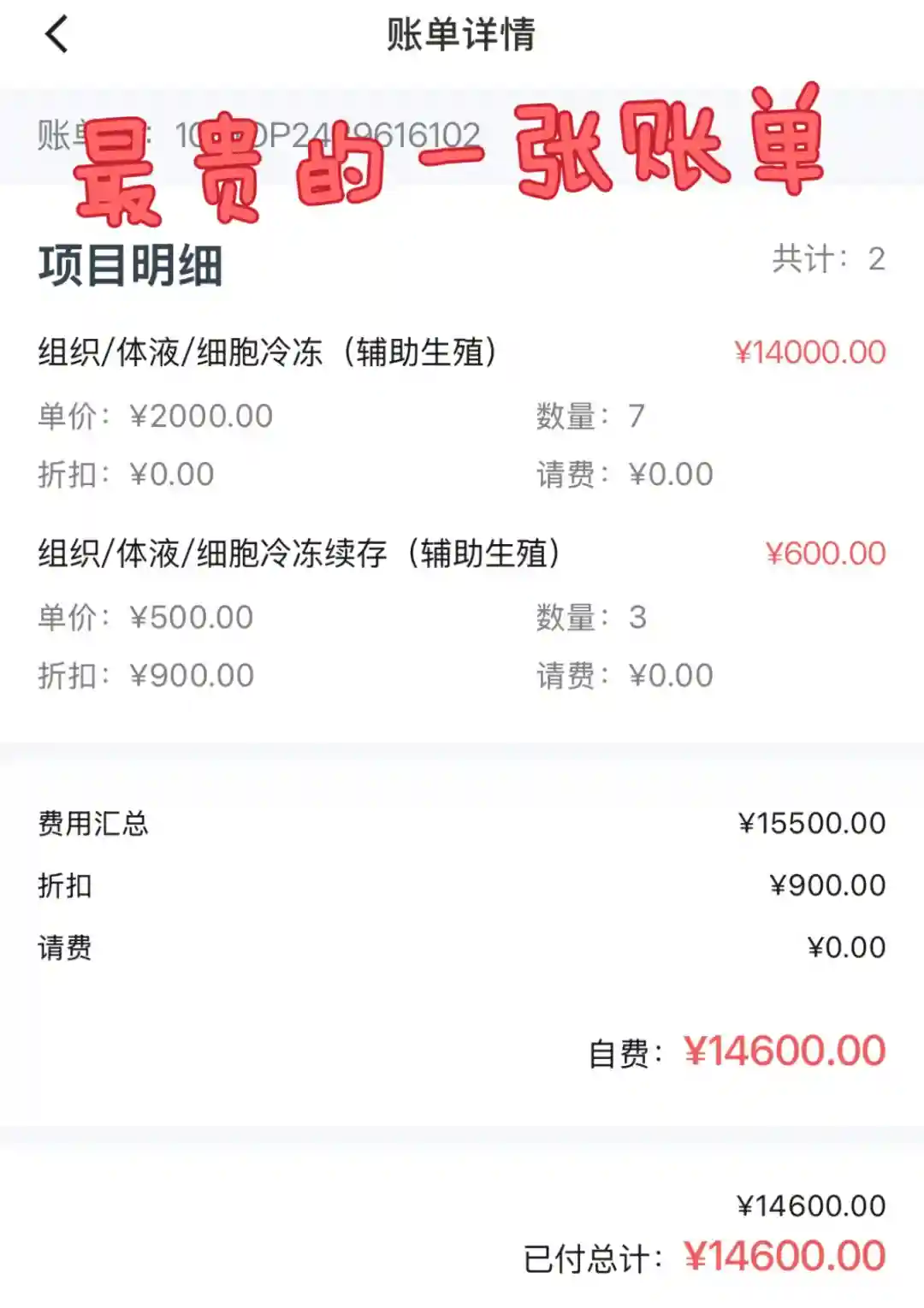 取卵手术+冻管:我因为有13个胚胎,冻了7管,一管费用2000元,而且这是不进医保的,每个人的管数不一样肯定会比我便宜一些哦(图4)