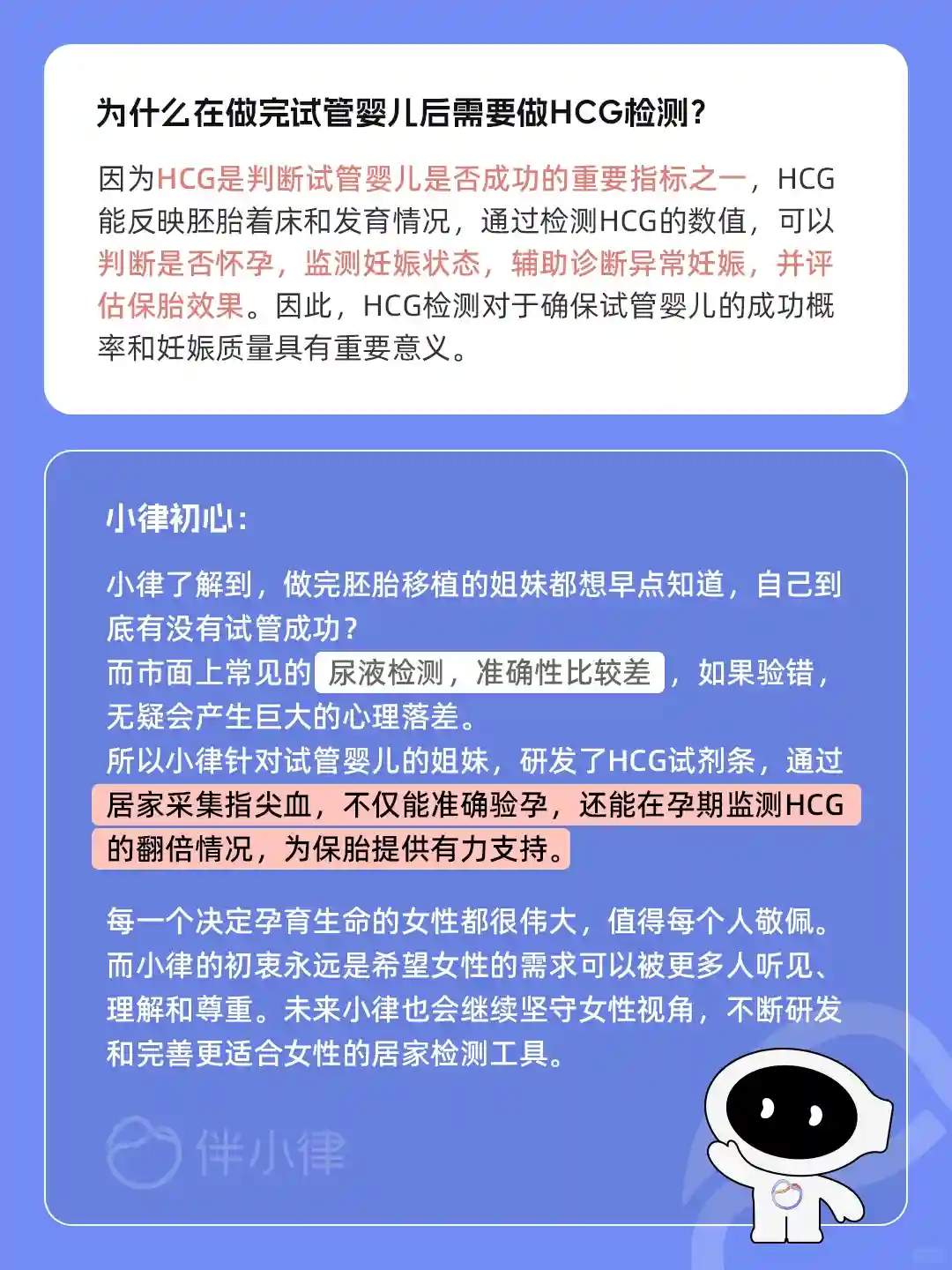 因此研发了针对IVF人群及有验孕、保胎需求女性的HCG试剂条,采集指尖血检测,直接获取数值,比尿液检测更准确,也更直观。❤️