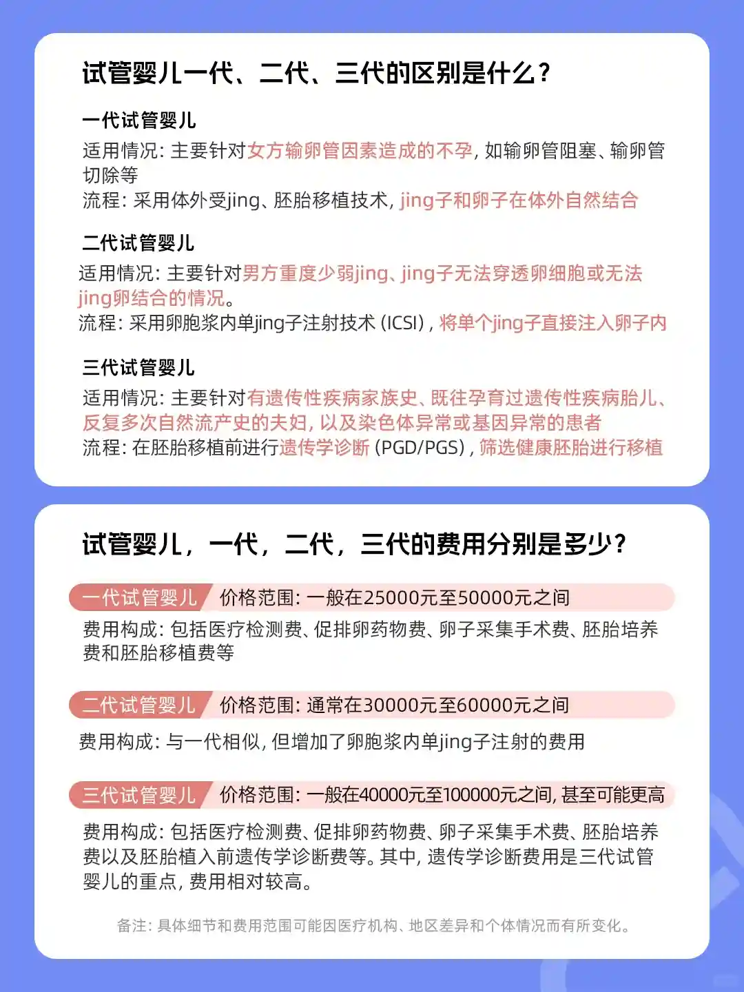 3、试管婴儿,一代,二代,三代的费用分别是多少?
