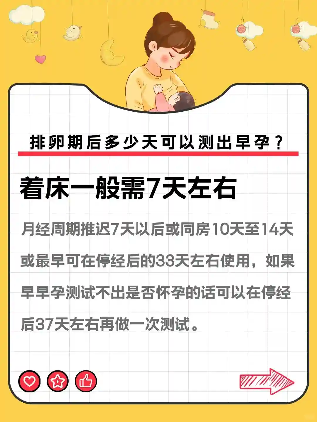 受精卵着床一般需要7天左右的时间,也就是说,怀孕当天(相当于同房后7天)即可检测是否怀孕