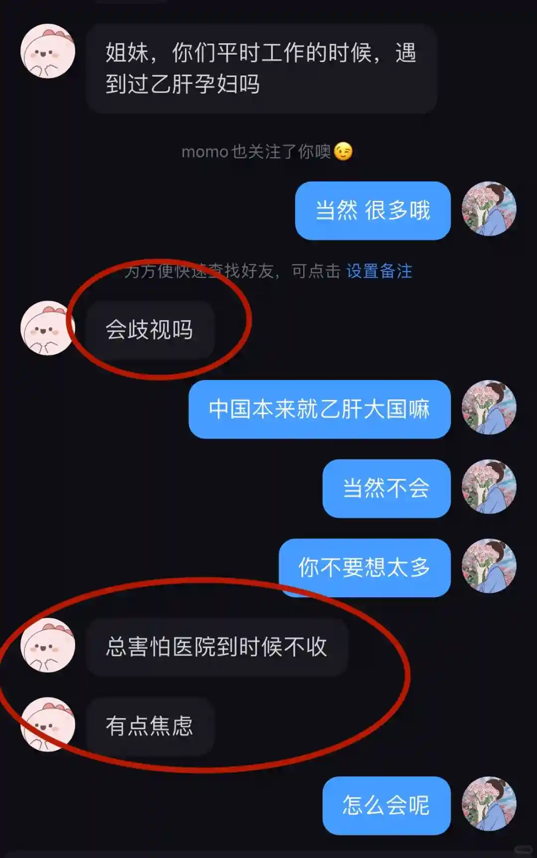 她的焦虑出乎了我的意料之外,担心会在就诊过程中被歧视,另外也担心医院会因此拒绝收治(呜呜🥹),另外是不清楚自己要不要吃药💊(我特意为她查了指南,希望她不要太担心🤣)