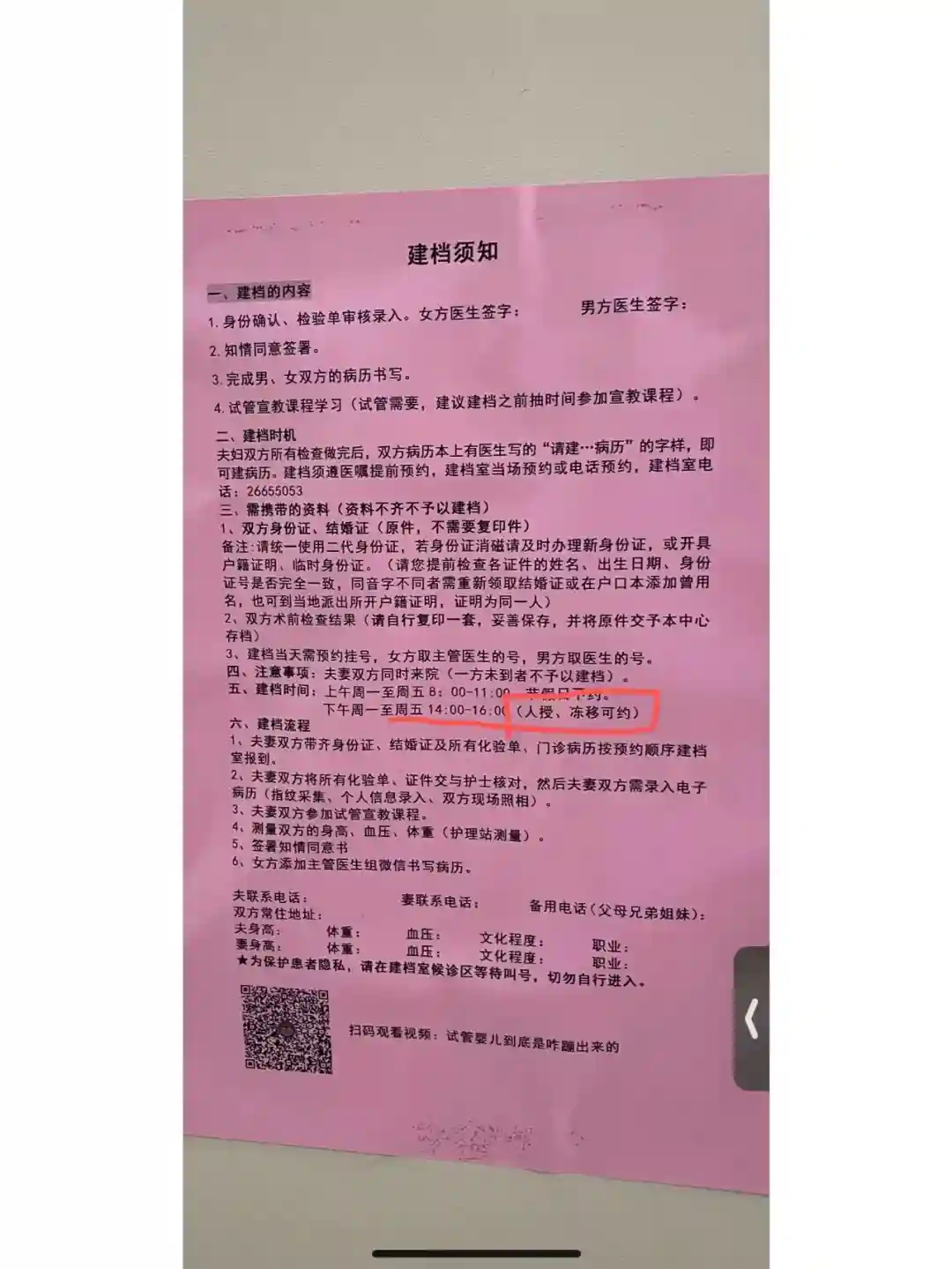 期间就还是签一堆的文件,拍照,录指纹,但是拍照只拍了男女合照,这次不用拍个人照片。完了之后就可以走了。所以冻移建档可以跟看诊安排在一块,约早上时间,建档完就可以找主任看诊,能节省往返次数。