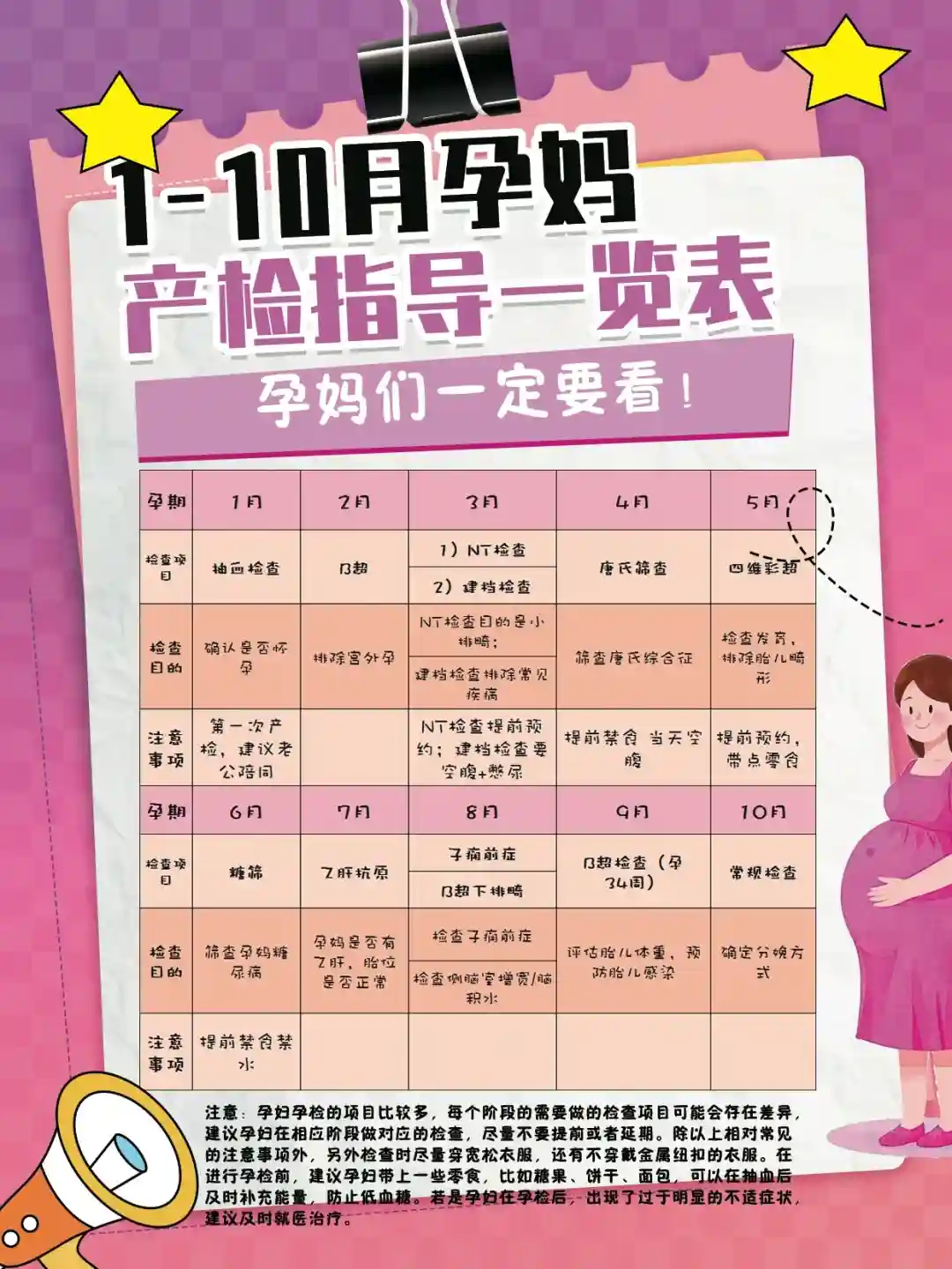 🤰📅 亲爱的孕妈们,孕期产检是保障你和宝宝健康的重中之重。为了让你们能够更清晰、更科学地进行产检,我们特别整理了一份1-10月孕妈产检指导表,快来一起看看吧!👶