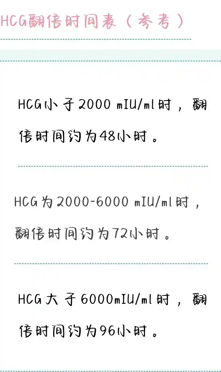 HCG水平在每48~72小时翻一倍,即*隔日应该至少增长53%~66%,可通过HCG翻倍情况推测妊娠情况。
