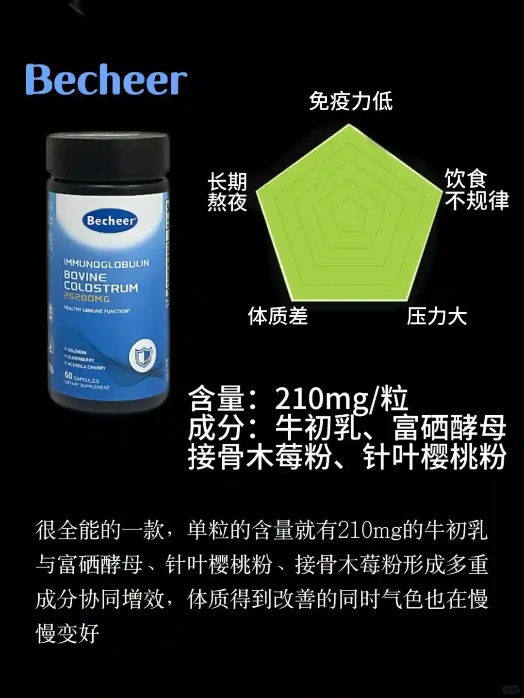 ✨牛初乳富含很多营养成分,其中含有大量的免疫球蛋白,能够增强机体自身免疫力 ;