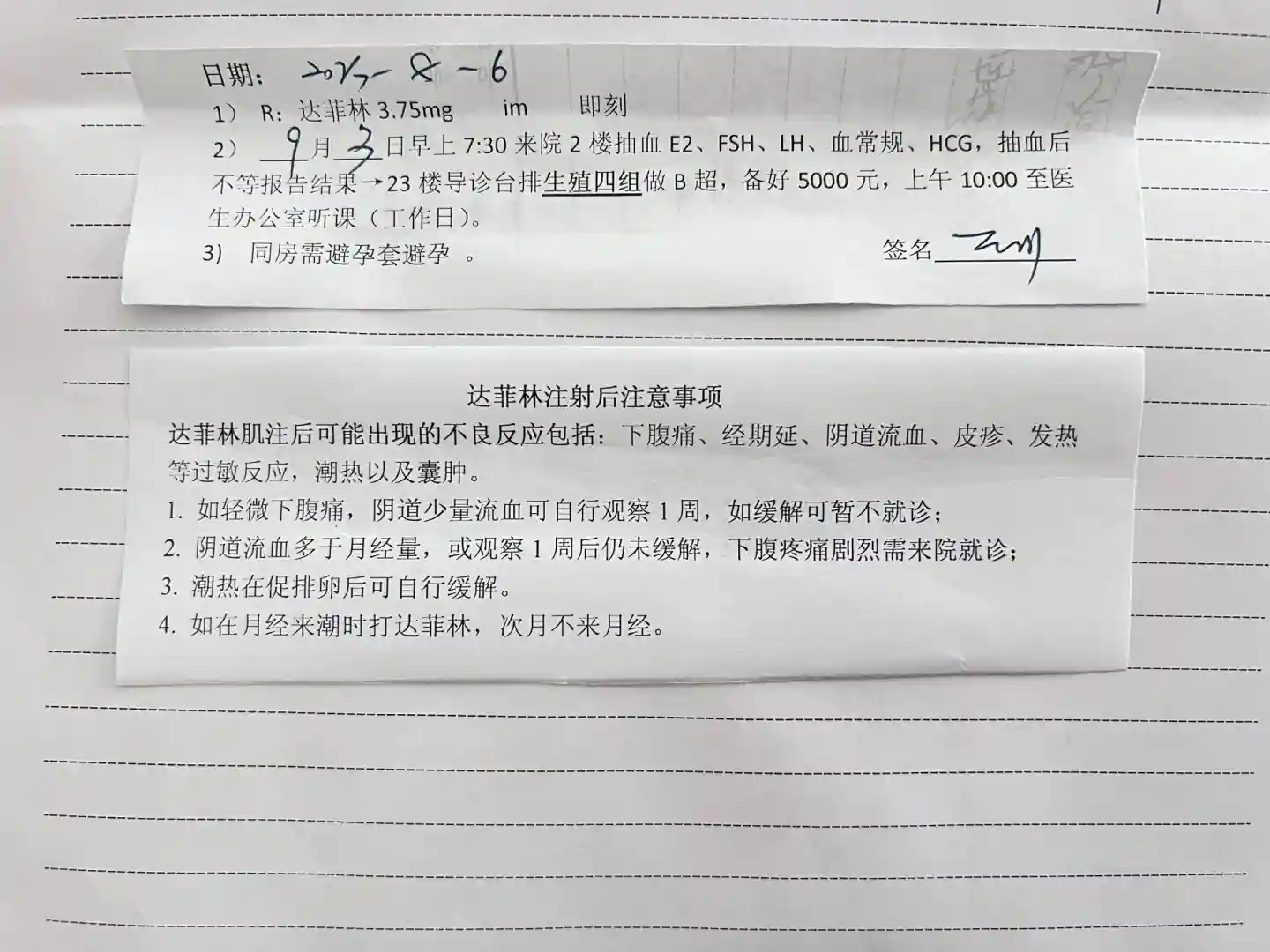 下次:9月3号返院 7点30到2楼抽血