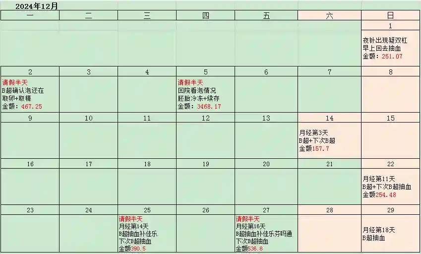 🌈月经第3天,第11天,第14天,第16天,第18天返院,5次B超+3次抽血