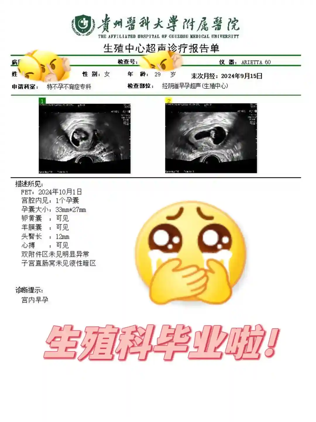 虽然第一次鲜胚移植失败,但是剩下的两枚囊胚移植成功了一个,并且二移一针肝素都没打,虽然孕反有点严重,但是一想到自己已经成功从生殖科毕业了就觉得很开心很感动!