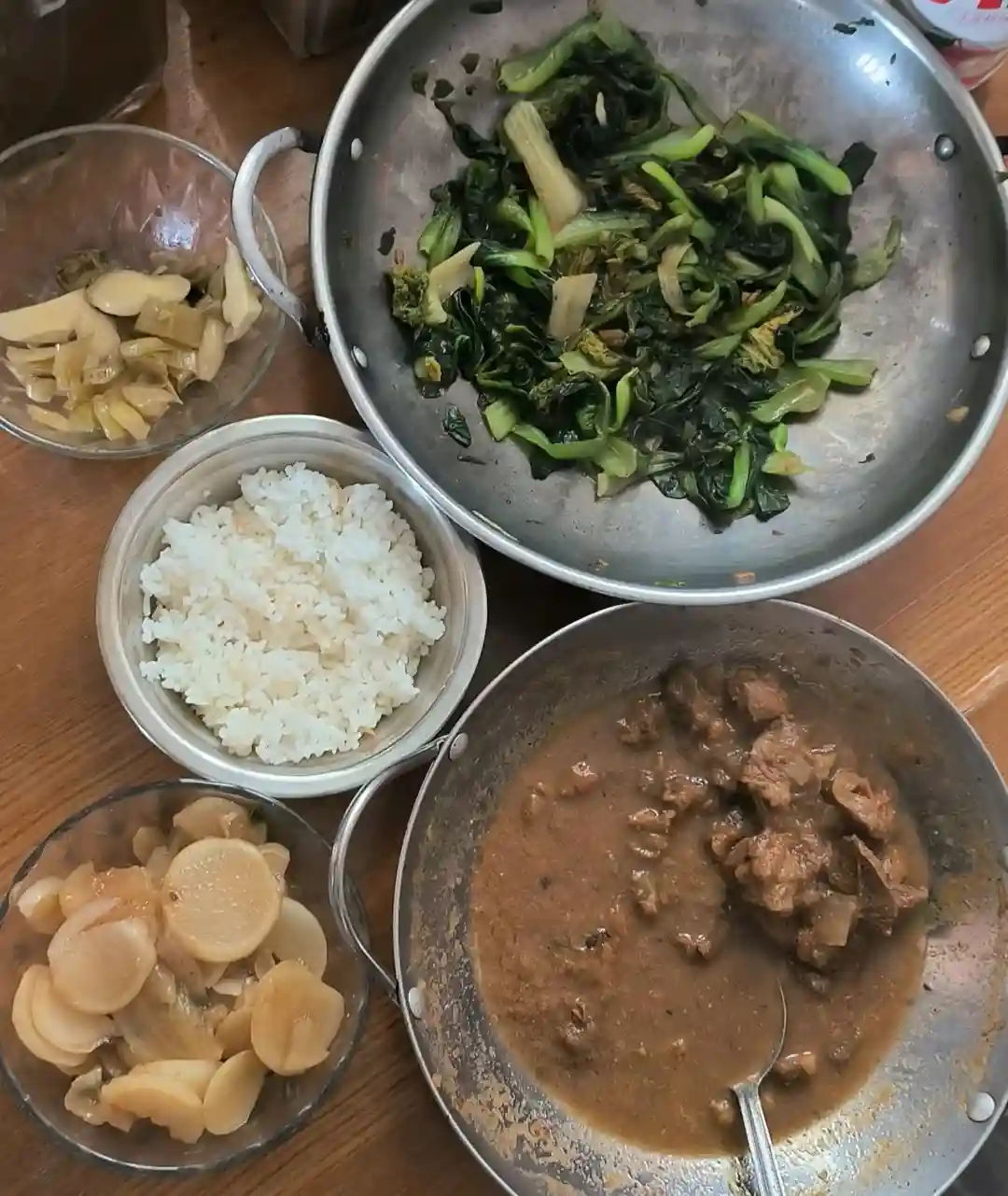 🥣午饭:一碗饭➕猪蹄汤炒青菜➕红烧萝卜➕酸菜杆➕红烧牛肉