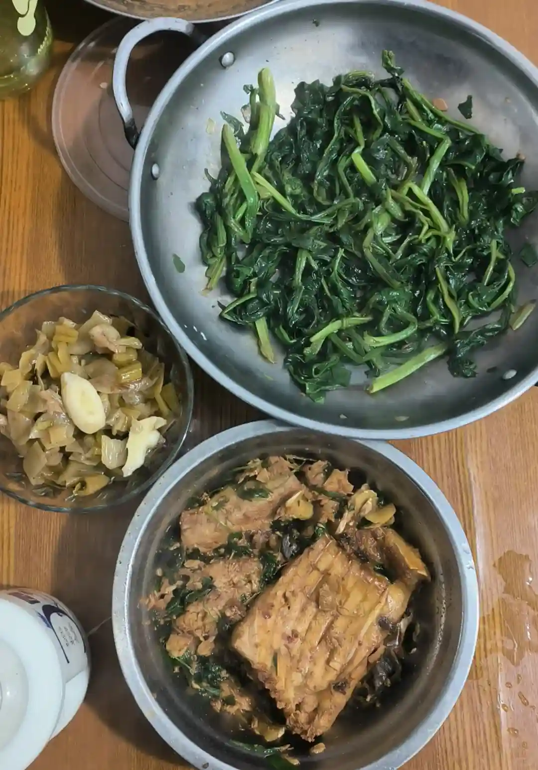 🥣晚饭:红烧鱼➕3个大烤紫薯➕一个烤红薯(共计809克)➕猪蹄汤炒菠菜➕酸菜杆