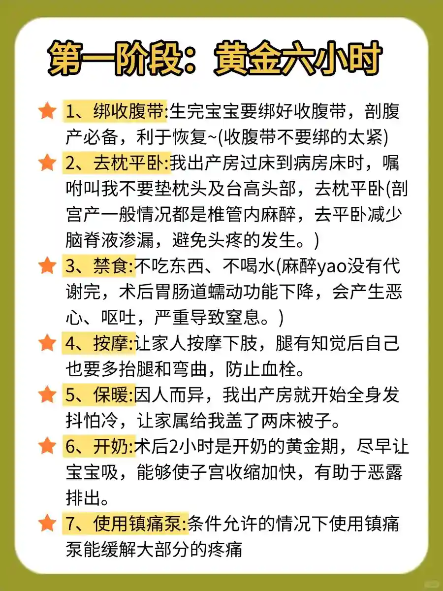 👉👉黄金6小时剖腹产护理要点: