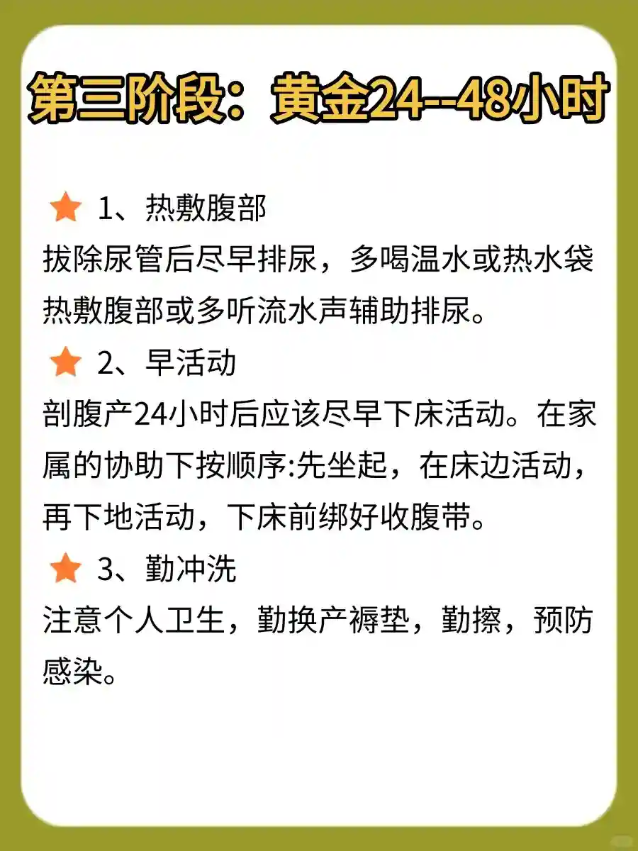 ”生了才知道原来剖腹产绝不是“打一针,挨一刀”这么简单,实际上,剖腹产后的妈妈们都要经历漫长疼痛与艰辛恢复的时间~为剖腹产后的妈妈们提供了非常实用的护理建议,特别是在术后的黄金72小时内。以下是对这些建议的简要总结,以帮助新手妈妈们更好地理解和记忆: