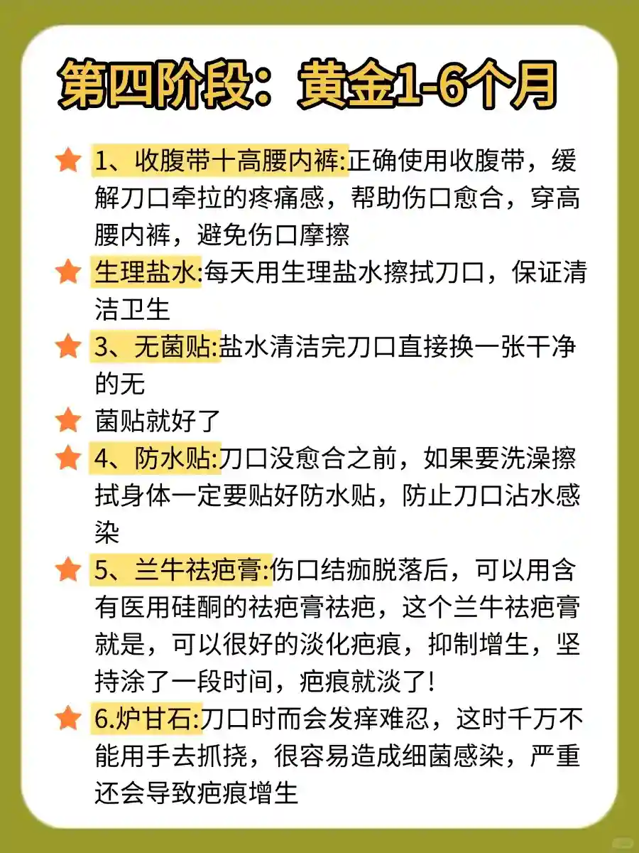 👉👉黄金1-6个月剖腹产疤痕护理要点:(1)• 收腹带+高腰内裤:缓解疼痛,帮助剖腹产疤痕愈合。