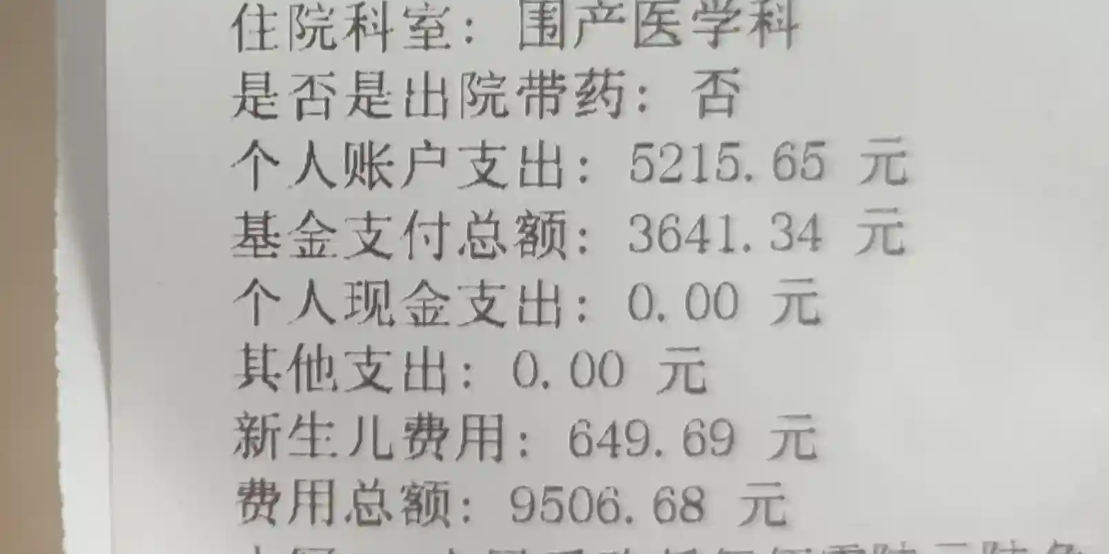 新生儿费用:649.69元,其余8856.99元为大人费用