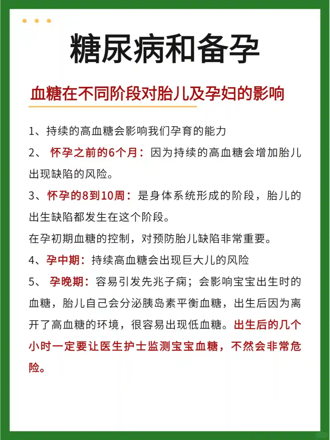 5、 了解高血糖在整个孕期对妈妈和宝宝的影响。