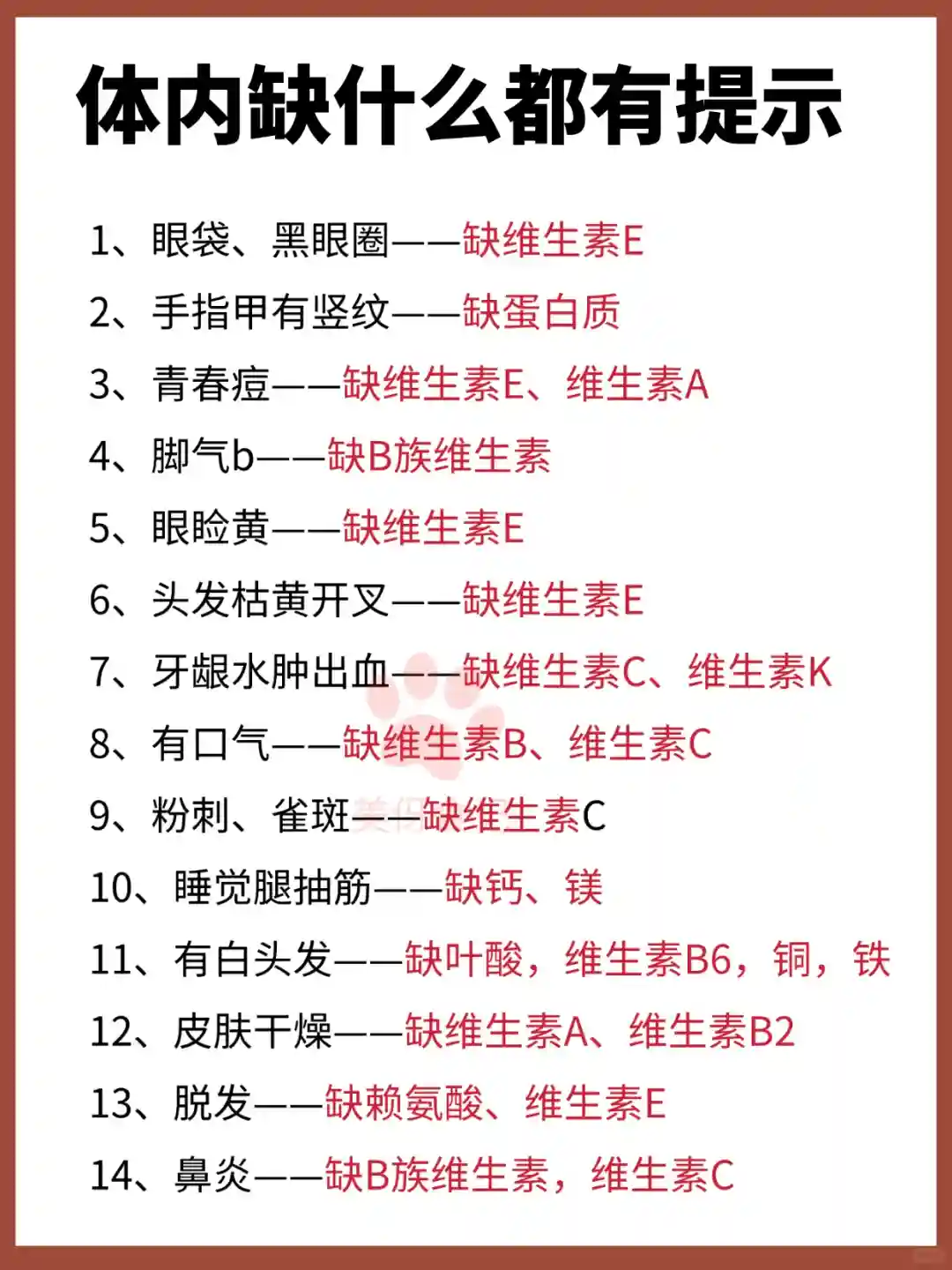 1分钟自查体内缺什么维生素|缺乏维生素表