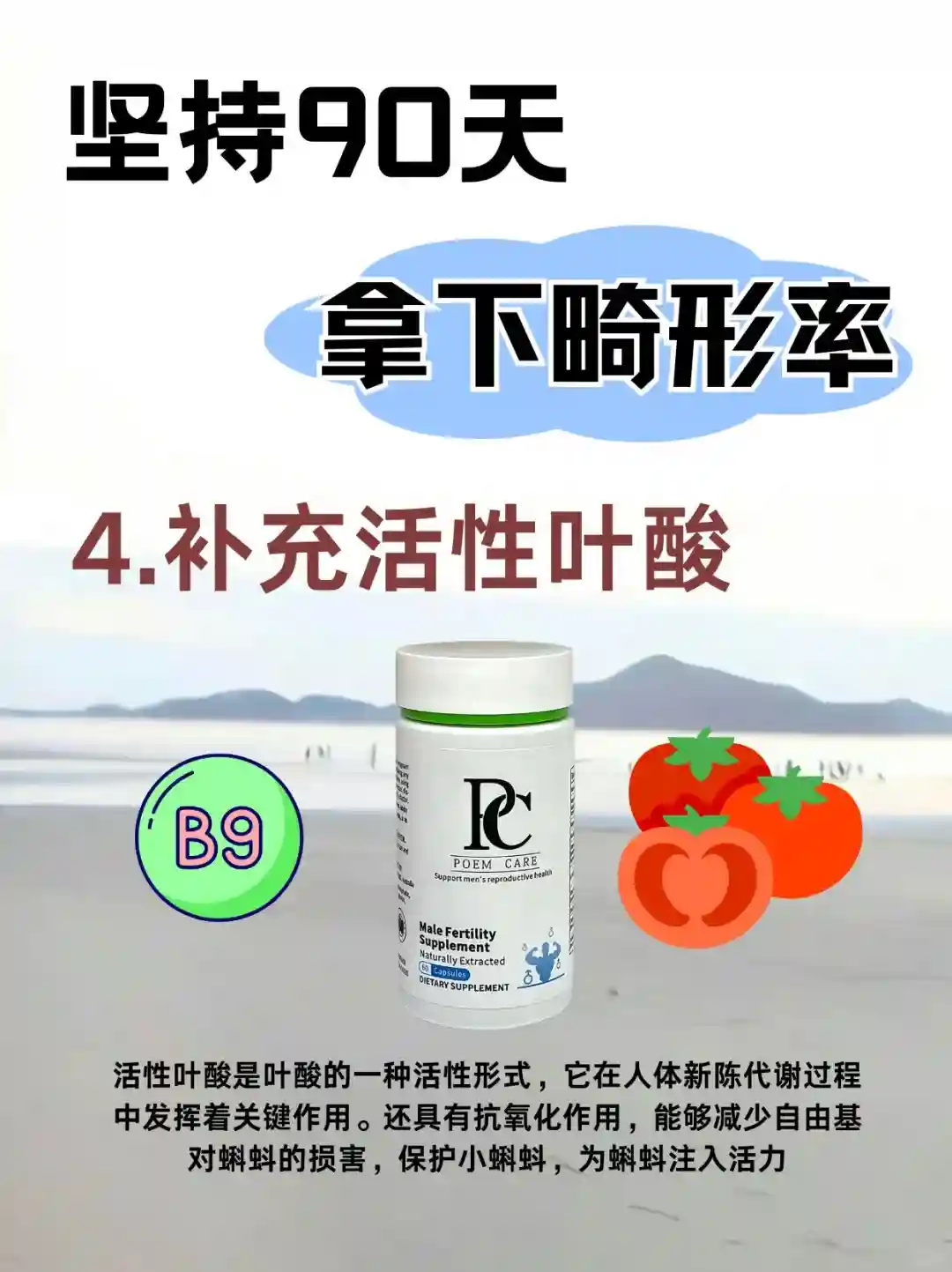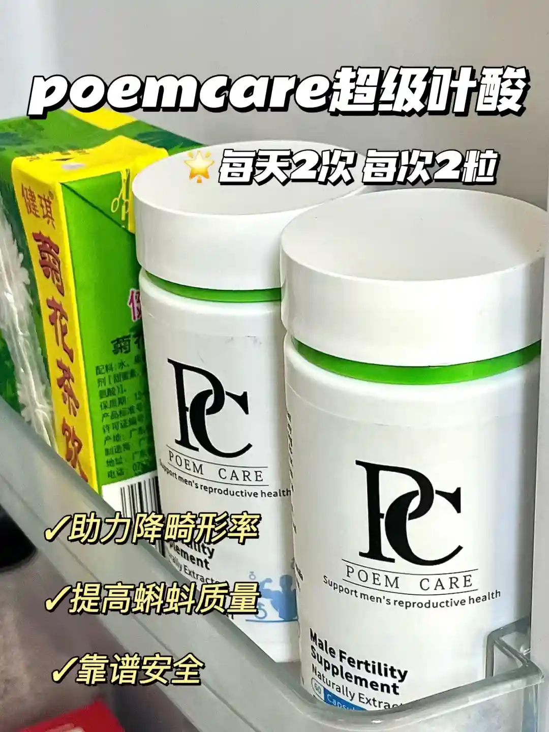 💡在内服方面我们一直吃的是poemcare超级叶酸,专研男士能力的,里面的活性叶酸是好吸收的,而且还另外复配了番茄红素和PQQ等,一瓶多补啊!一天4粒就可以补齐所有营养,不用吃别的营养品。很方便很省钱也很给力!老公吃一段时间,发现不怎么起夜尿了!睡得很好!