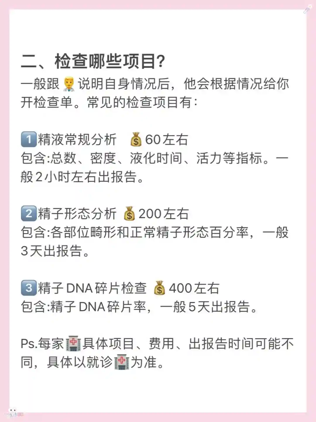 Ps.每家🏥具体项目、费用、出报告时间可能不同,具体以就诊🏥为准。