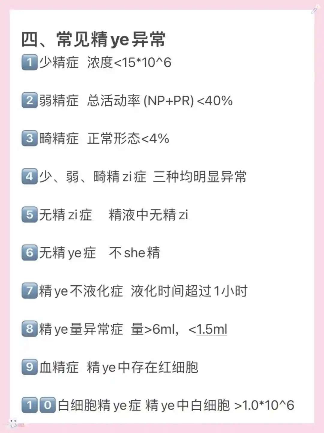 1️⃣0️⃣白细胞精ye症 精ye中白细胞 >1.0*10^6