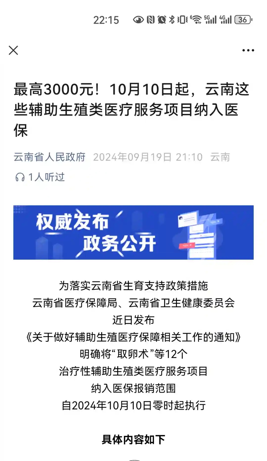 就在刚刚云南省医保局官宣了,云南试管纳入医保,从2024年10月10号开始执行。