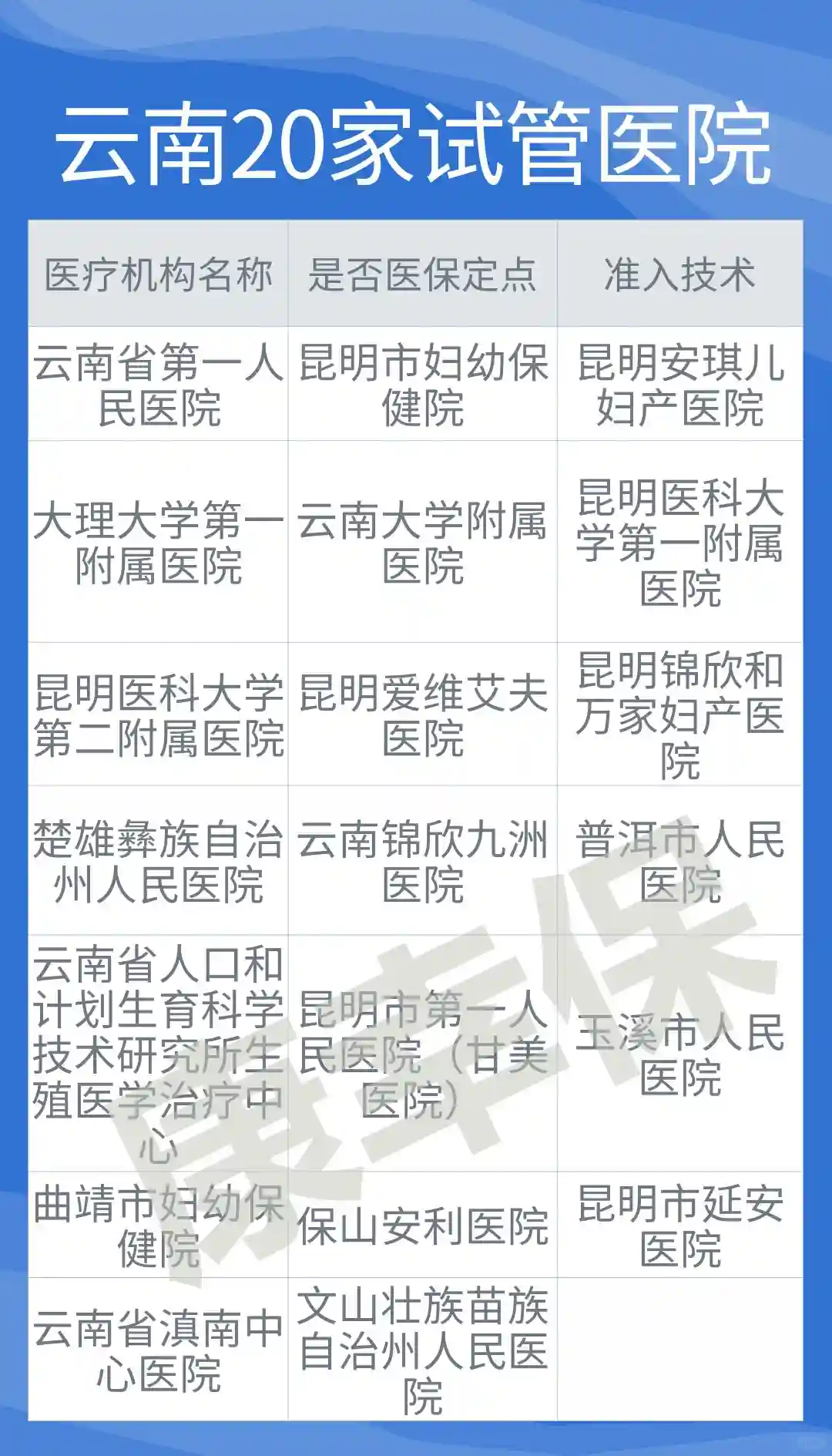 4️⃣有20家医院有试管资质。具体医保定点医院名单可留言查询🔥医保补充:中国人保心愿保试管保险