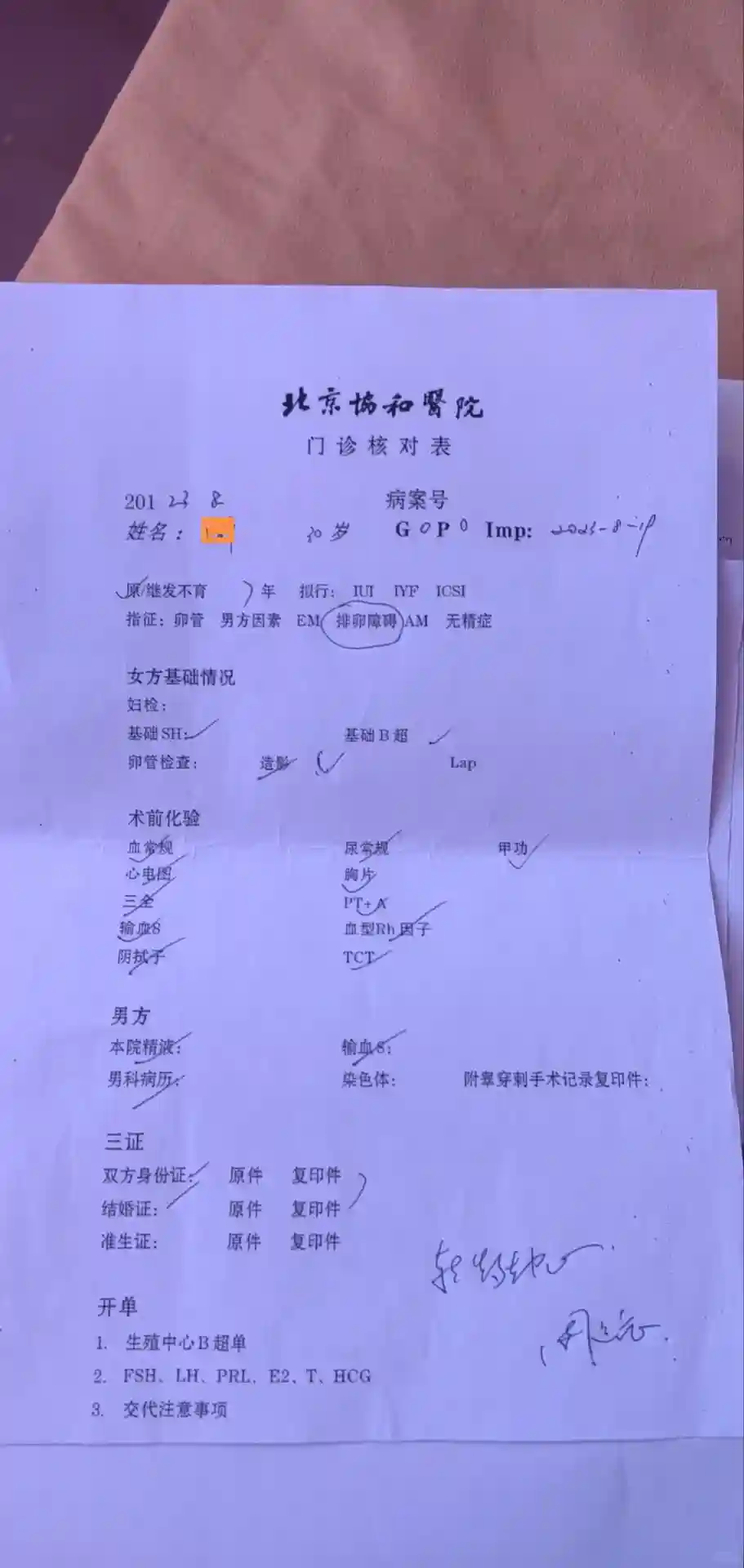 早晨7点半准时到北京协和西单院区(但我觉得还可以更早些来),直接到3号楼二层自助机打印挂号条(外地医保先去窗口做关联,然后在窗口取号,外地医保自助机是取不了号的),然后到四诊室开抽血化验单和超声,并写病历(这里要强调一下:门诊核对表上面对应的检查单最好提前找好放一起,我就是太多检查单找好久没找到最后耽误时间不说还被排到了最后一个),写好病历赶紧到自助机打印排号条(自助机流程:检查检验预约报道→生殖中心采血取号→取号)再到护士站打印条码,打印好直接到治疗室排队抽血。血抽好就可以去早饭了,超声检查新人会排到最后,所以不用忙碌等待,这个时间段抓紧吃早饭!回来后5诊室门口等待叫名字做超声(促排卵检查),超声检查完成手机APP查看抽血结果出来没有,如果出来自助机打印结果,把病案号写到结果单的右上角,放到对应的诊室门口框内等叫名字就好。我等到叫名字已经两点,一口吃的没吃,因为没人告诉抽完血可以去吃早餐,又不敢出去,又怕叫过号,一直等到两点看完大夫开了方案打了才去吃饭。