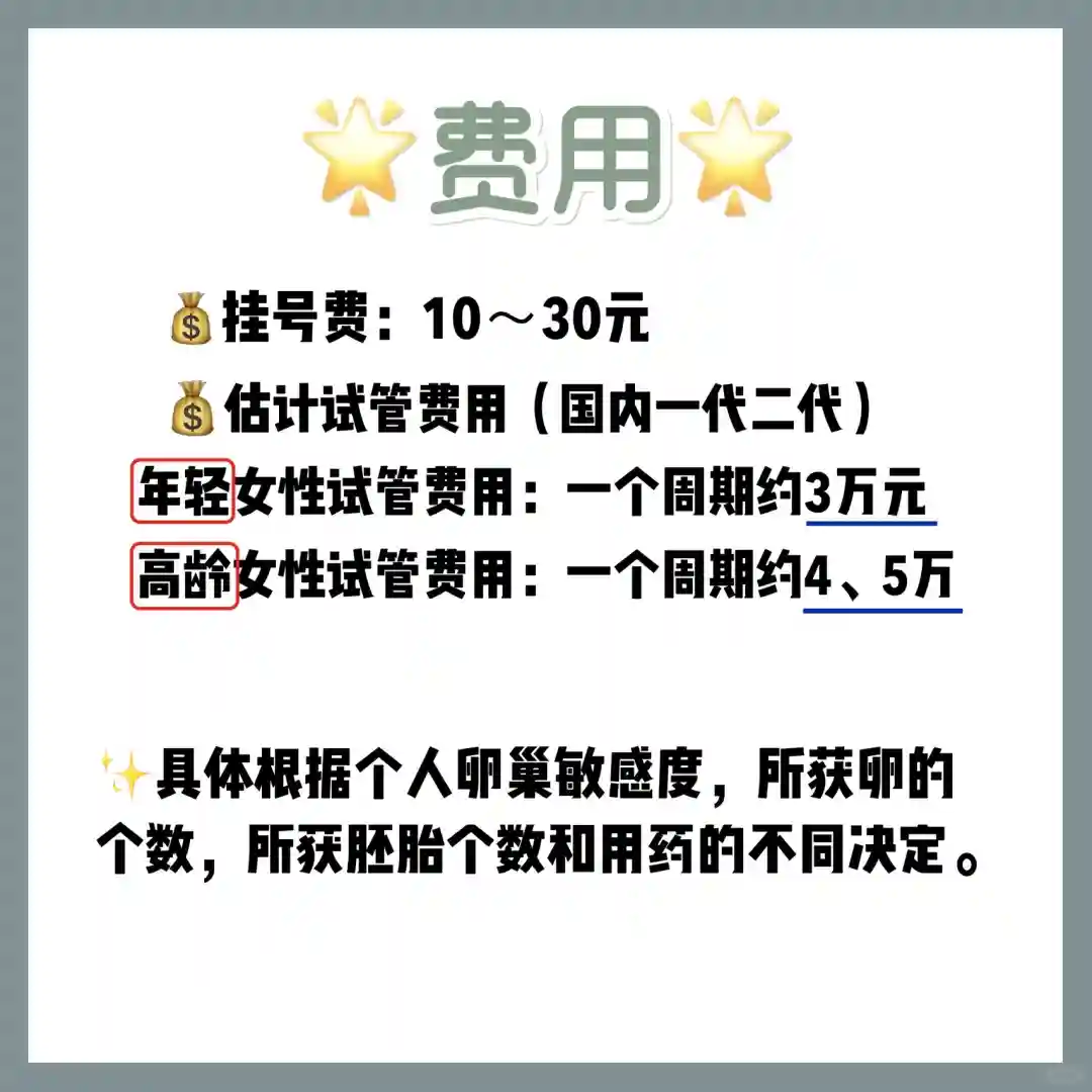 👉国内一代二代:年轻女性试管费用:一个周期约3万元;