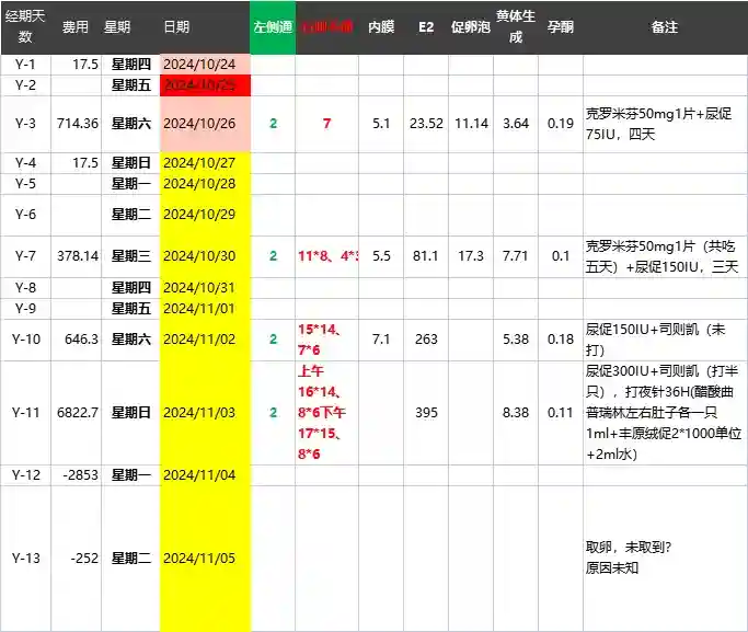 11月03日(月11):左侧:2、右侧:上午:16*14、8*6下午:17*15、8*6(上午打尿促300IU,晚上打夜针绒促2000+曲普瑞林2只)