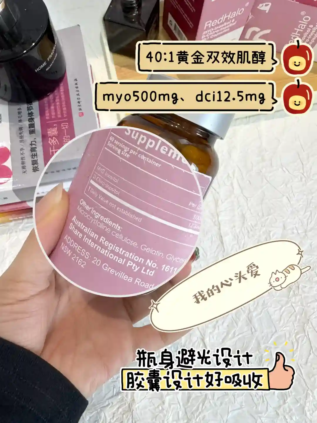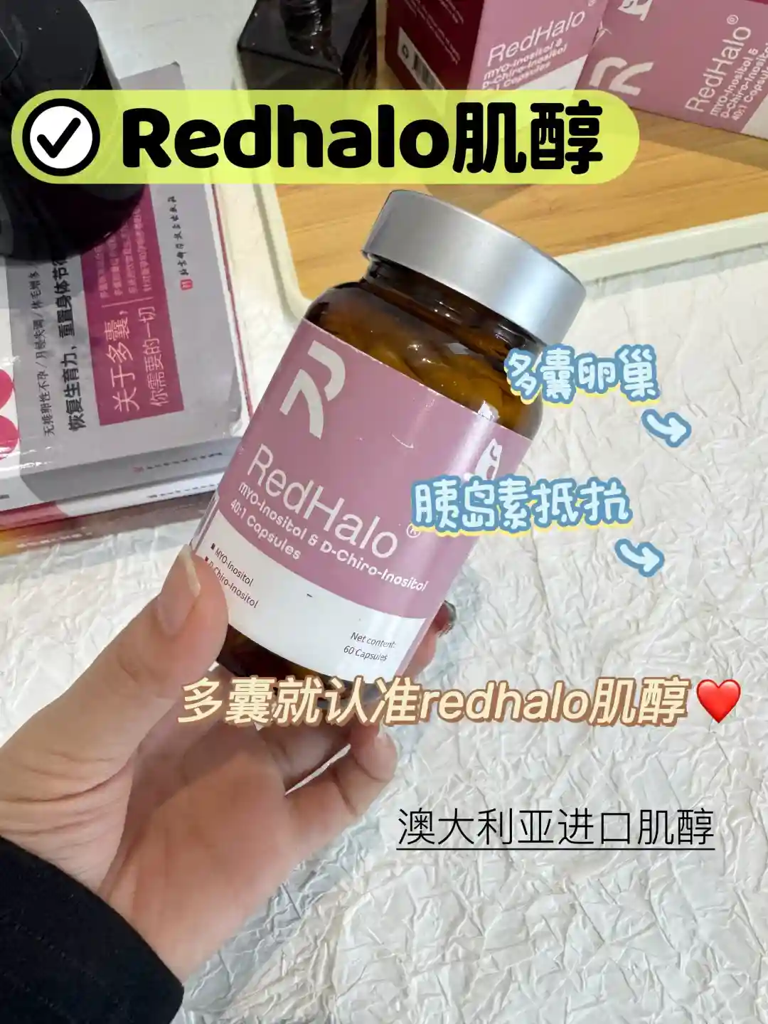 选择redhalo肌醇,40:1的黄金双效肌醇,一天两次、一次一粒,多囊患者的好选择!