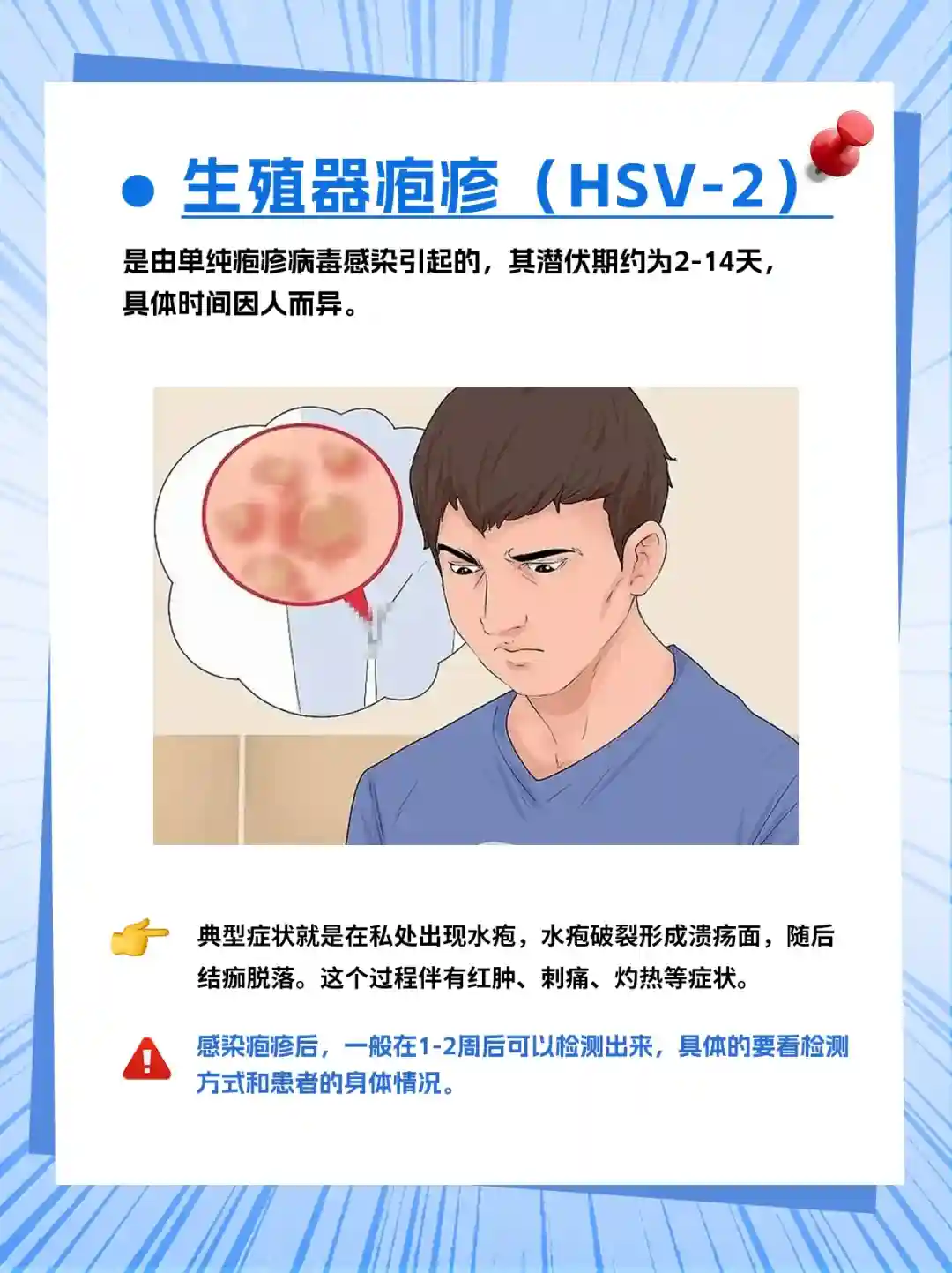 但总的来说,除了尖锐湿疣这个另类,其他⭐病都是可以在感染后的2-4周左右查出来的。