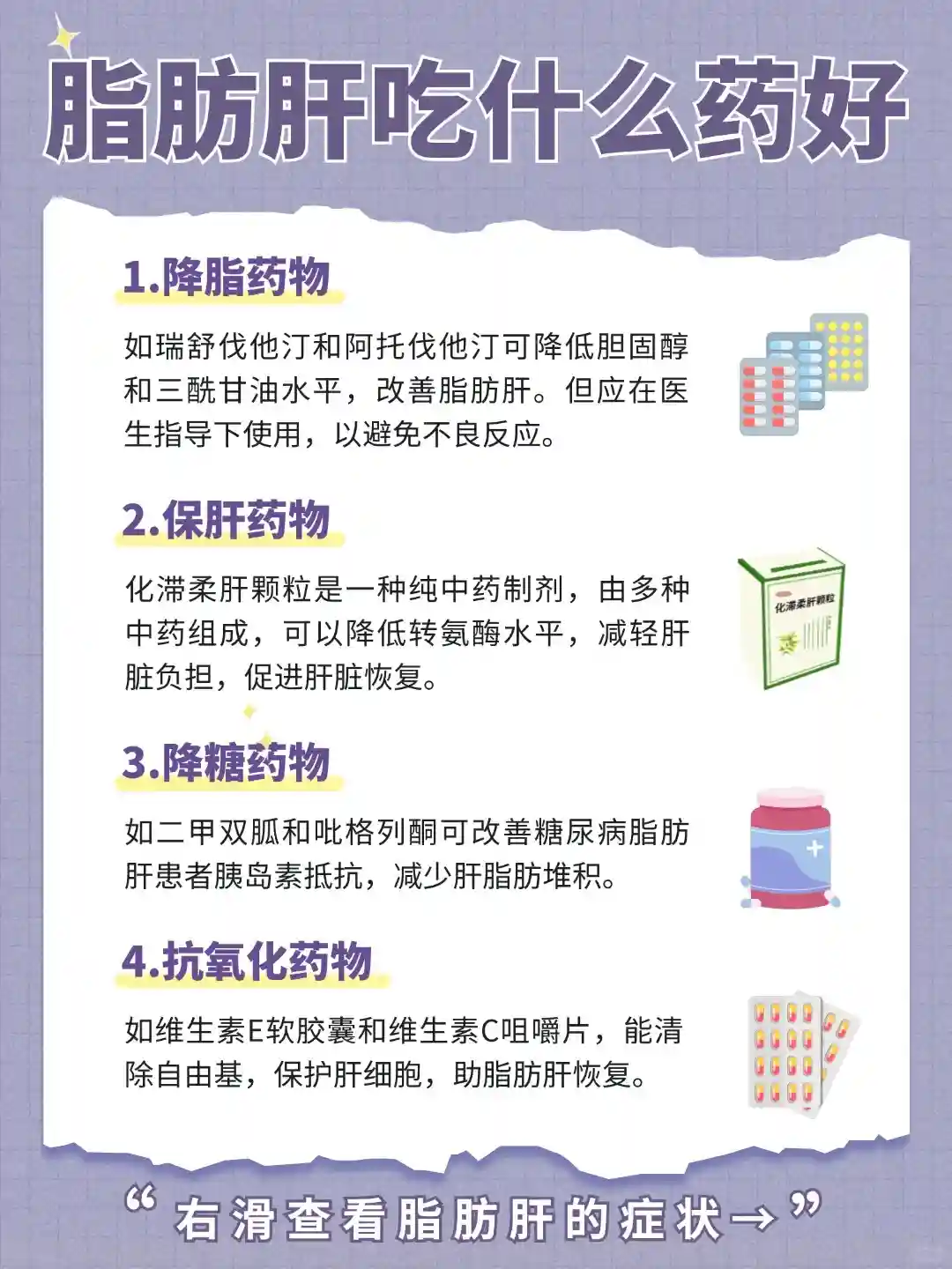 ❶降脂药物:如瑞舒伐他汀钙片、阿托伐他汀钙片等,这些药物可以降低血液中的胆固醇和三酰甘油水平,减少脂肪在肝脏内的堆积,从而改善脂肪肝。但需要注意的是,降脂药物应在医生指导下使用,避免滥用导致不良反应。
