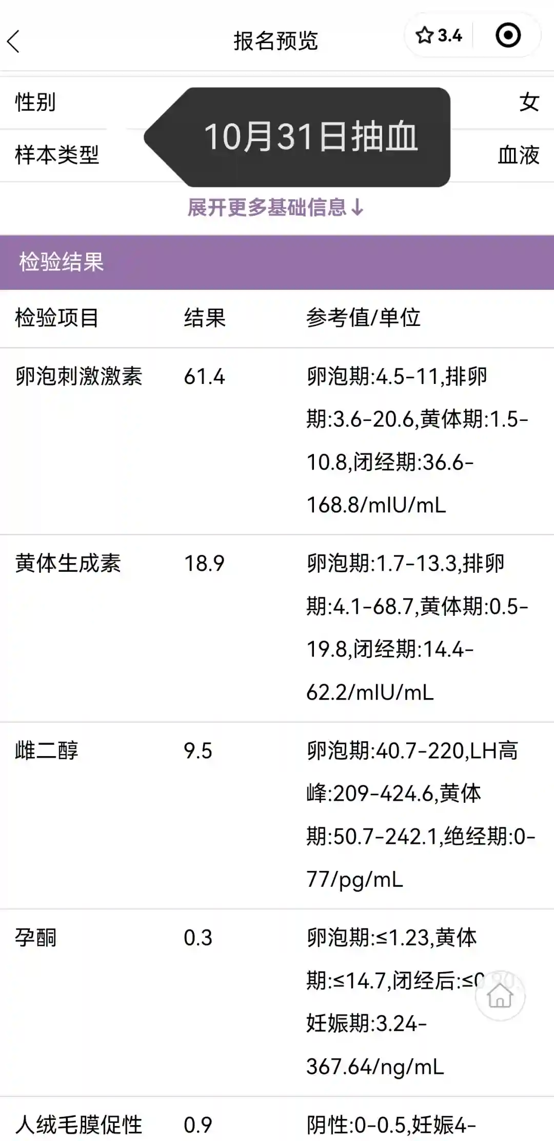 10月31号准时复诊,也就是姨妈第9天Fsh又高出了天际,又是没泡泡的一个月。医嘱:妈富隆一天一粒,吃8天。