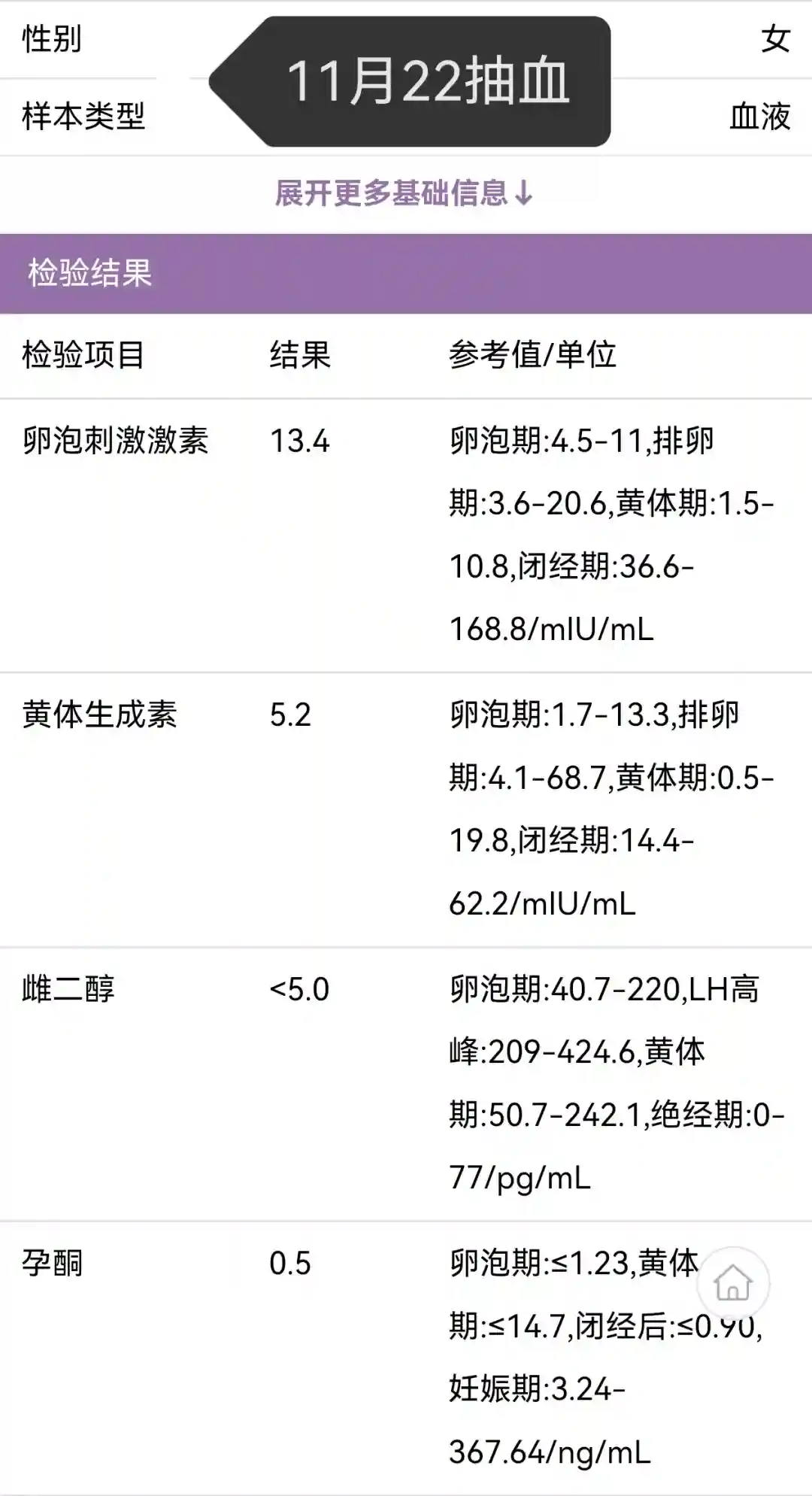 11月8号返院,Fsh降到22.3,但是仍旧没有泡泡。