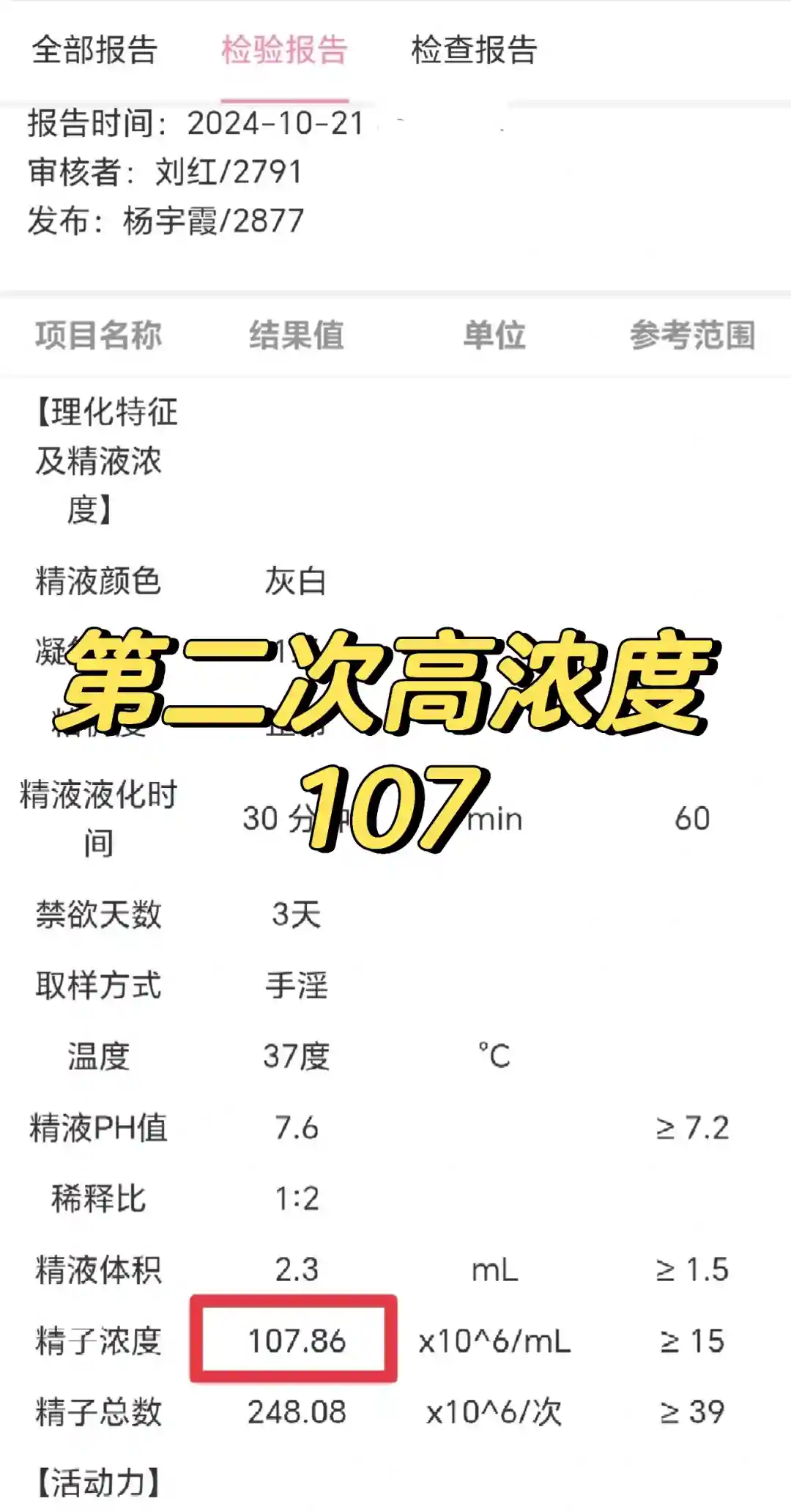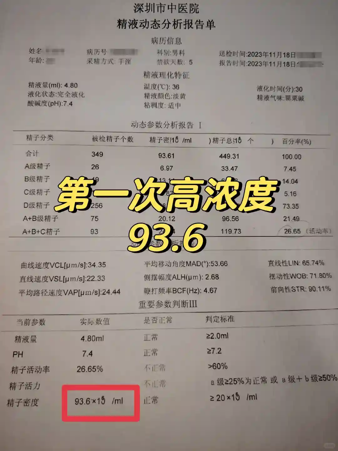在深圳中医院吃了一个半月中药后,浓度从平均50到93.6,活力没明显提升。