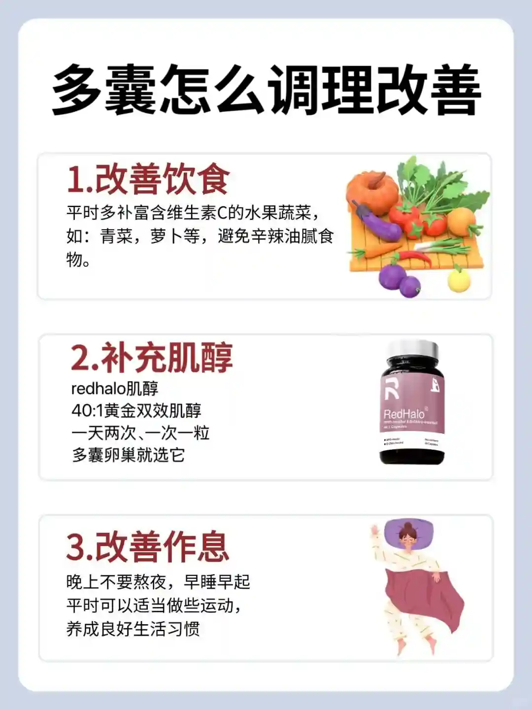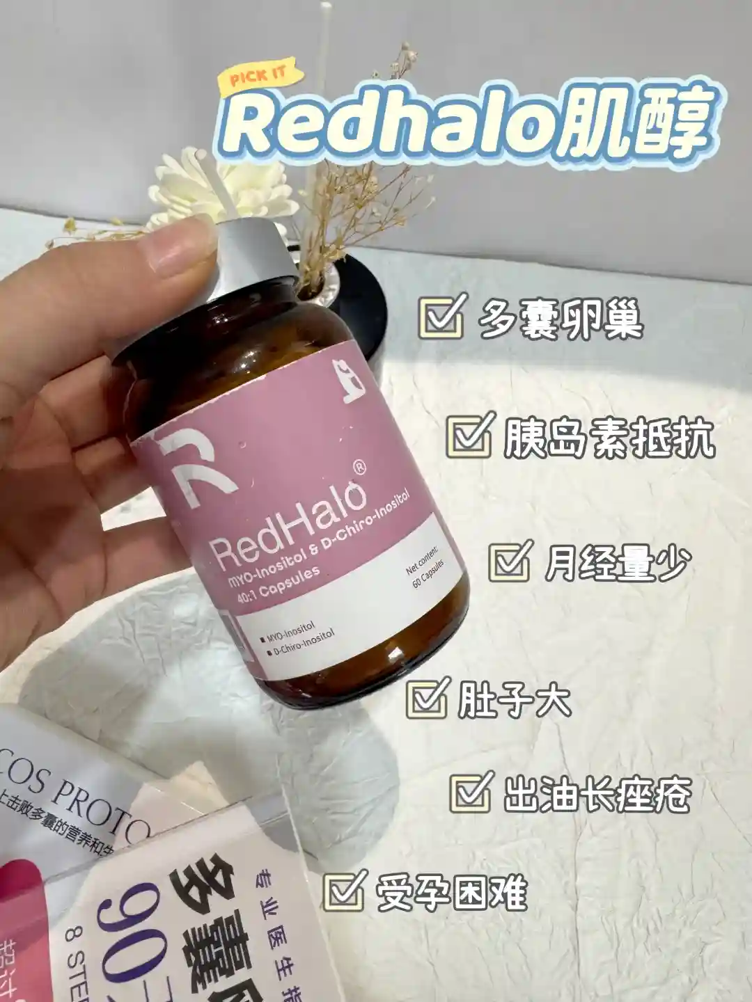 🅾重点说一下多囊怎么调理改善,除了日常生活中注意清淡饮食规律作息以外,最重要的还是补充肌醇,肌醇属于维生素b类,redhalo肌醇,40:1的黄金双效肌醇,一天两次、一次一粒,多囊的好选择!