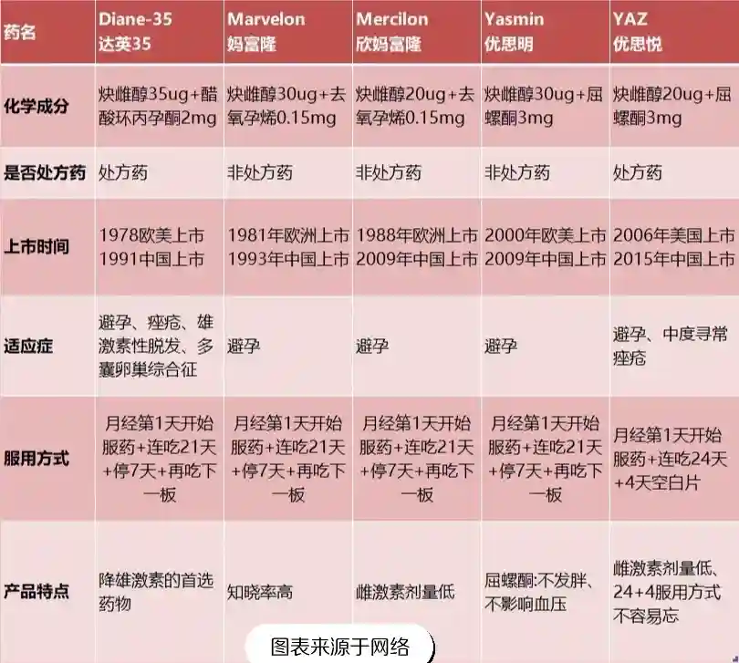 1️⃣达英:可以降雄激素的孕激素,可以治痘痘、多毛和多囊卵巢综合征。