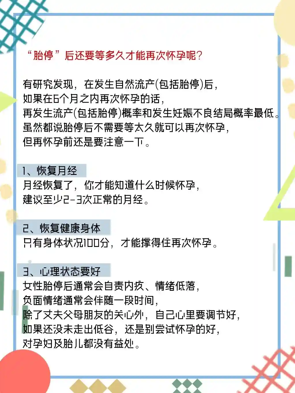 所以,如果不幸发生“胎停”,不用过于焦虑,下次怀孕成功是大概率事件