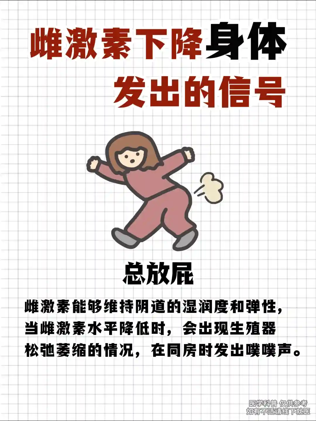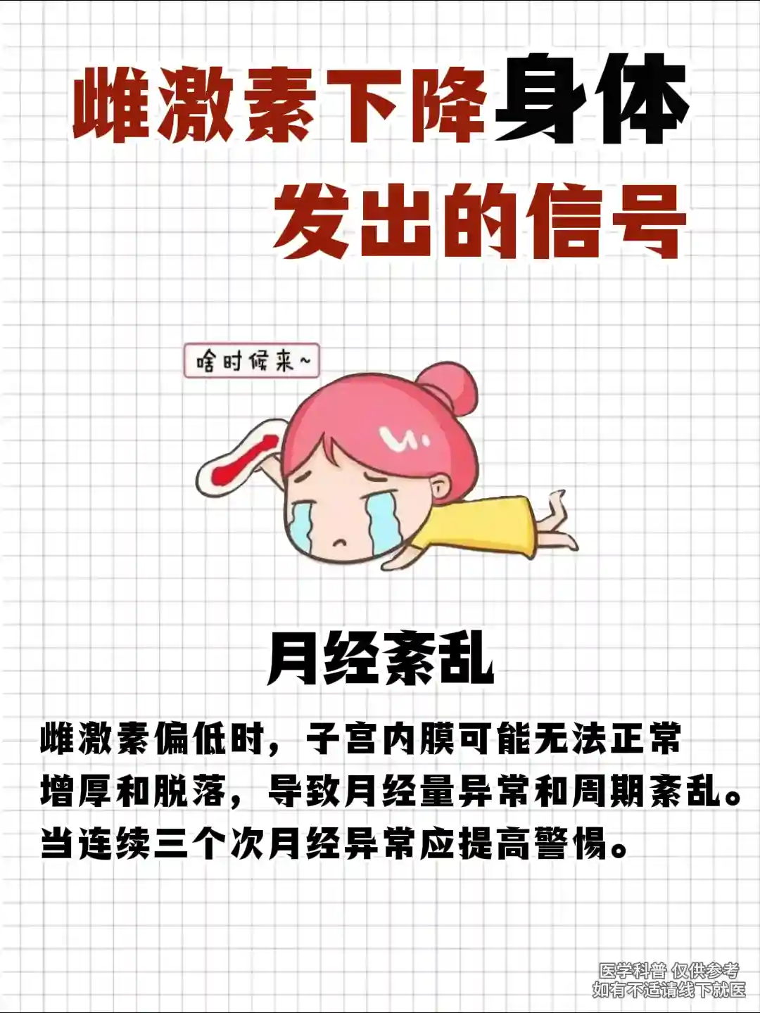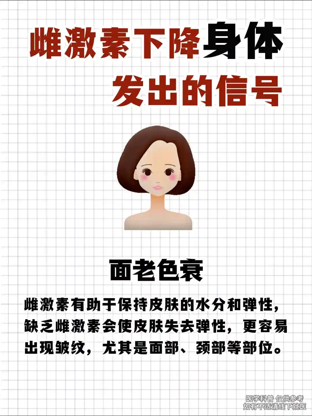 门诊上遇到太多二十多岁,甚至十几岁小姑娘雌激素水平不达标的情况了。其实,雌激素水平下降,身体是会给你信号的,这些信号你没有收到,没有理解其中的含义,时间长了对身体的影响是很大的。
