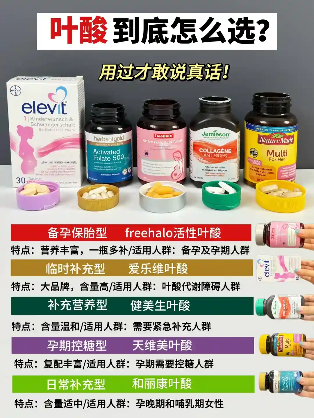 再来说说叶酸哪个牌子好以及它们有什么不同。我就拿自己研究过和吃过觉得不错的几个牌子举例吧。
