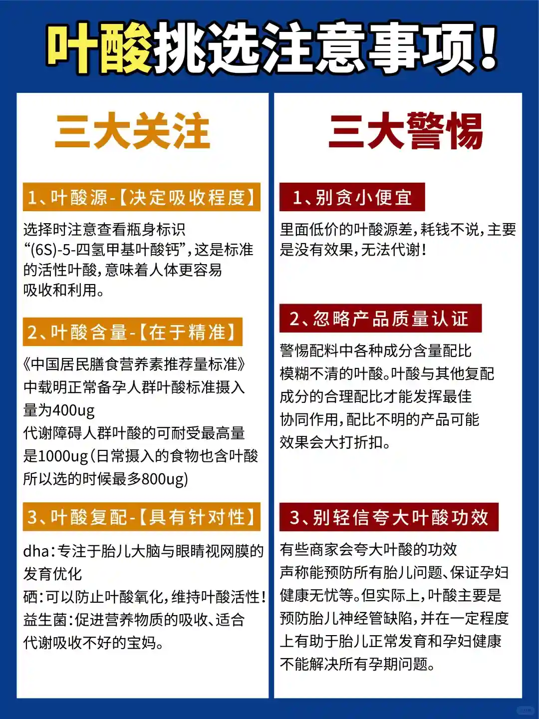 那备孕到底该怎么选叶酸呢?我总结了一下,主要有三大关注