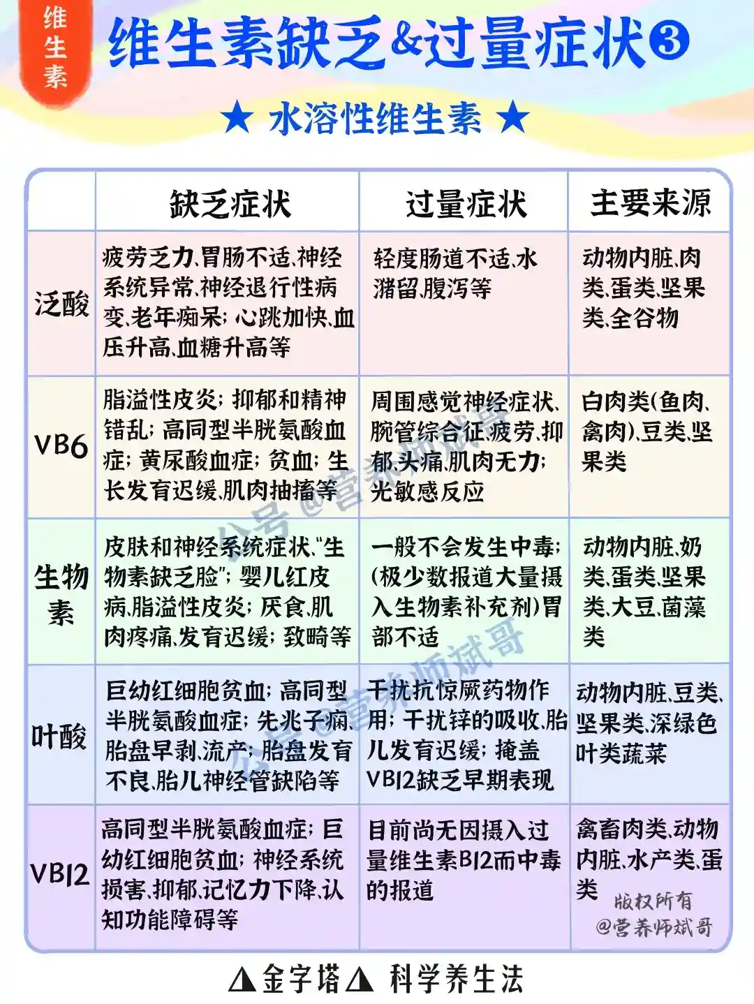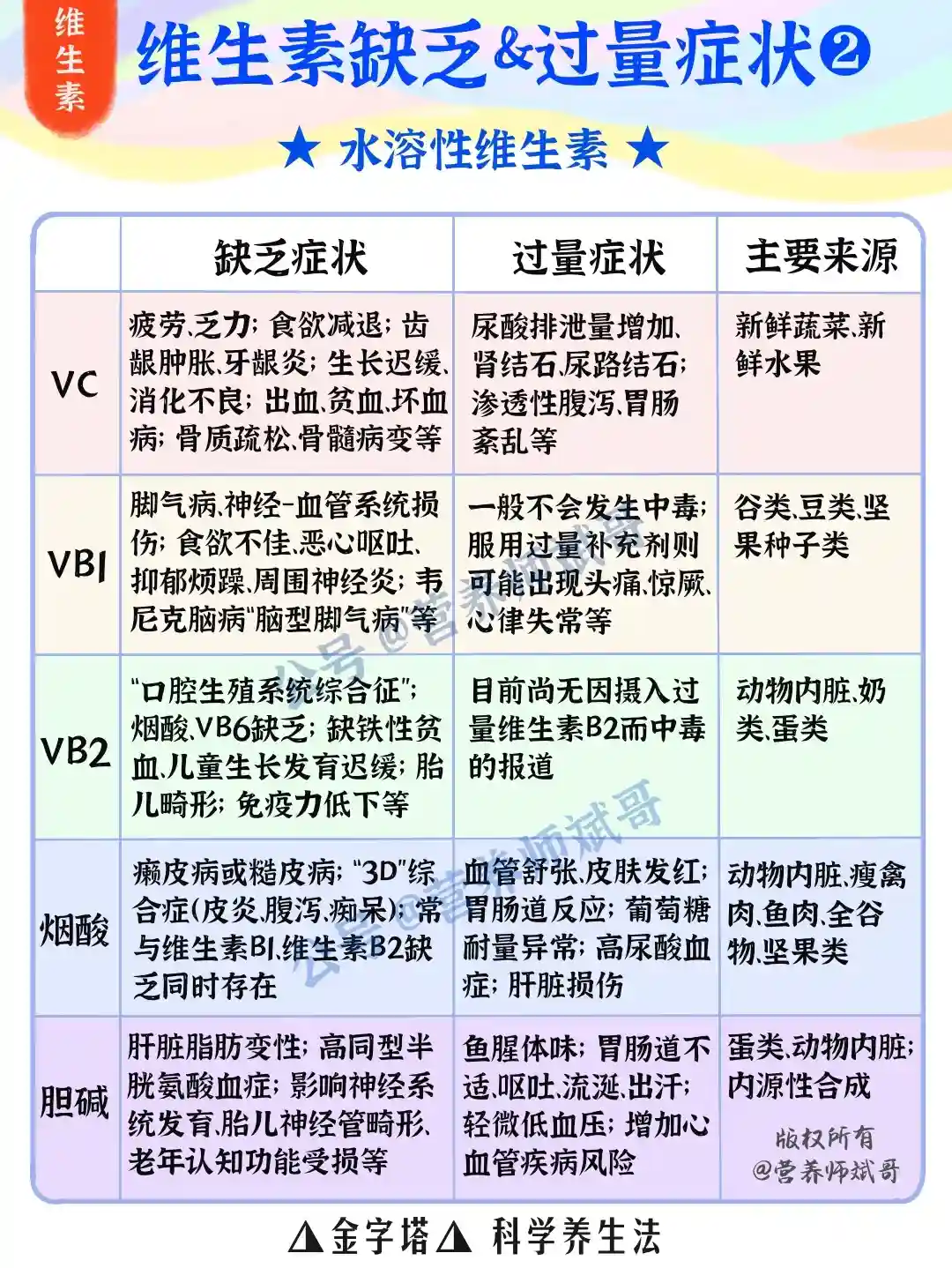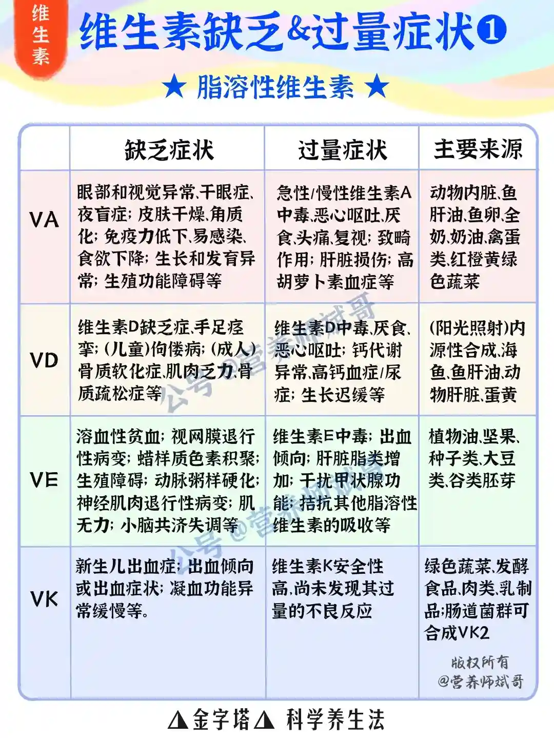 👉🏻至于各种维生素发生缺乏或过量时,会有什么症状?各种维生素的主要食物来源又有哪些?斌哥给大家标注在上面👆🏻的三幅图中啦~大家可以保存下来,经常自查一下维生素到底吃没吃够!
