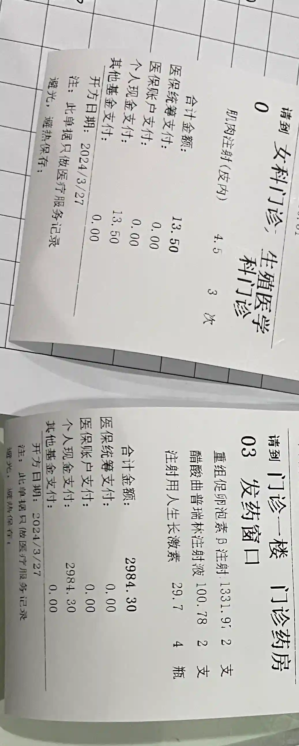 613打了今天的针(今天需要打三种针,以后几天也要每天打三种针,包括降调和促排卵),护士还交代了用法用量,打针的步骤。(那个男护士说话声音小,而且还没有耐心,问了两句,就怼我,说我看了门上二维码视频还这么多问题。)今天费用约3000元,主要是药贵。
