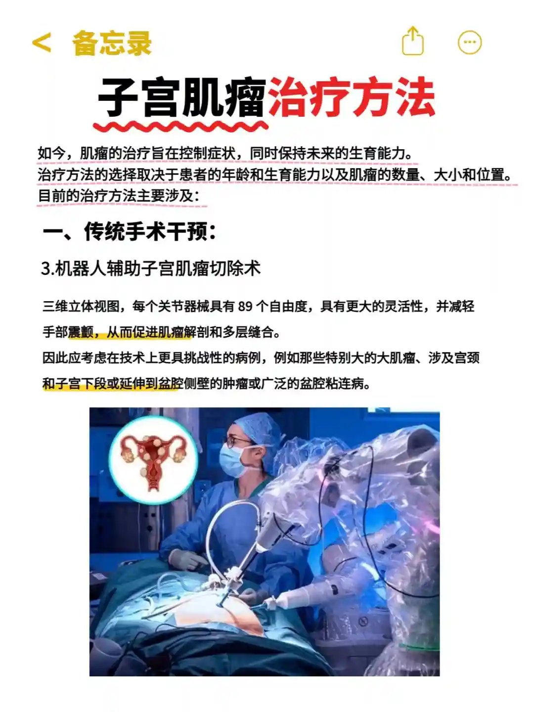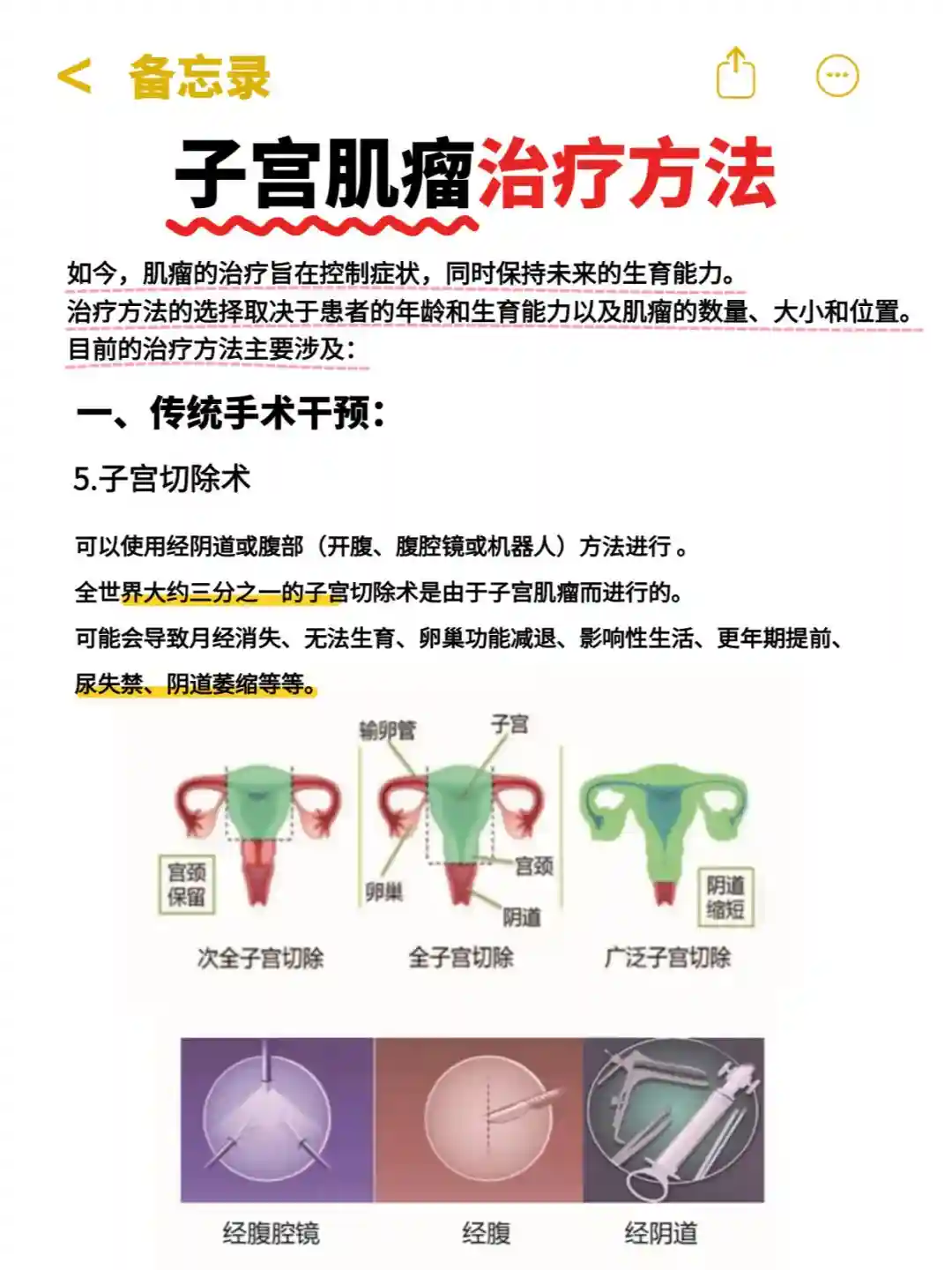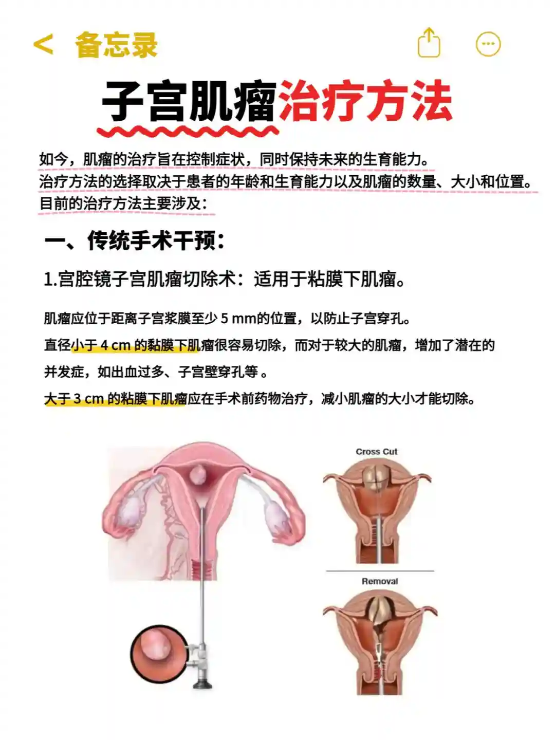 3.腹腔镜/宫腔镜/开腹手术:根据肌瘤位置和大小选择手术方式。