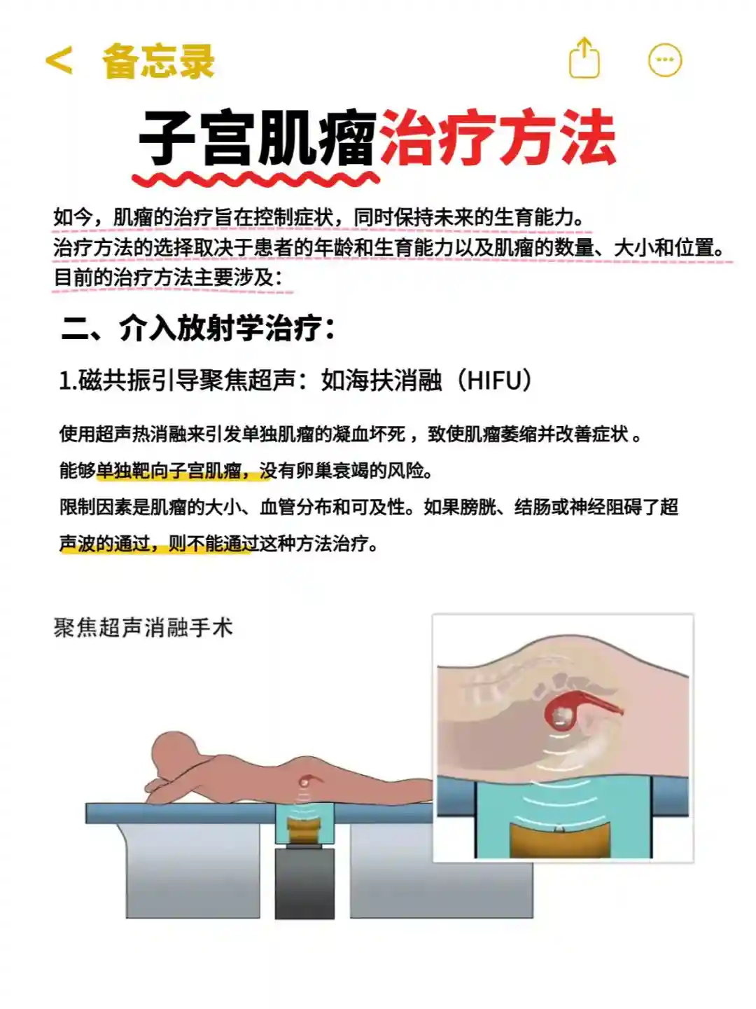 2.高强度聚焦超声消融(HIFU):利用超声波精准消融肌瘤,无需开刀。