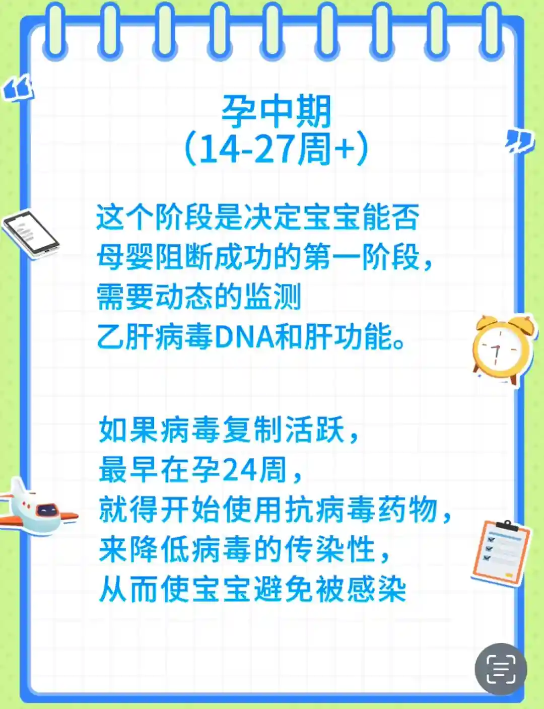 如果病毒复制活跃,最早在孕24周,就得开始使用抗病毒药物,来降低病毒的传染性,从而使宝宝避免被感染。